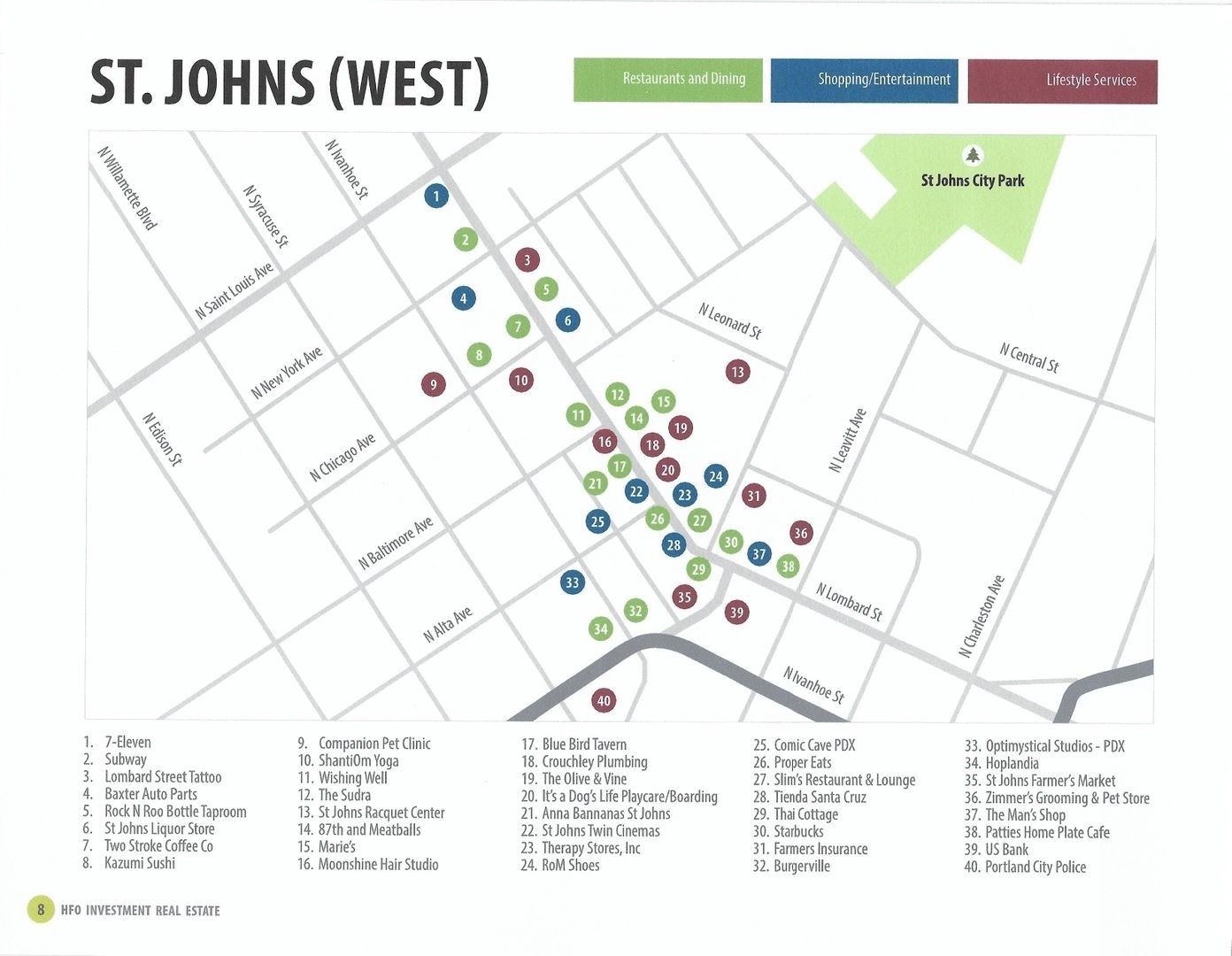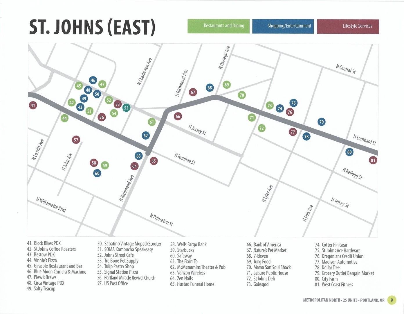 • Our quaint community is just blocks away from everything St. Johns has to offer - Cathedral & Pier Parks and the the iconic St. Johns Bridge, over 70 local restaurants, bars and coffee shops including many locally owned retail, pubs, pet-friendly cafés and outdoor green space.