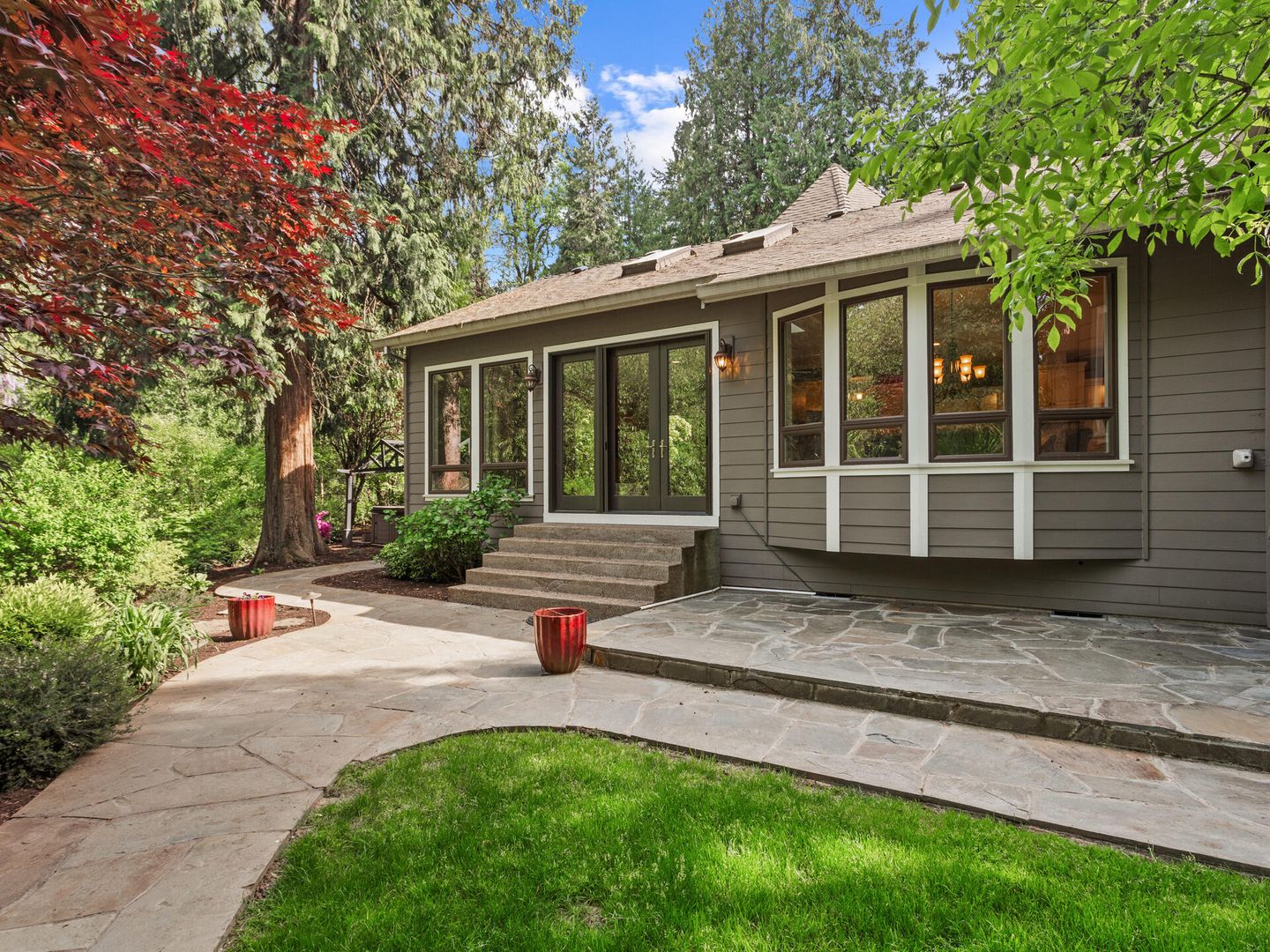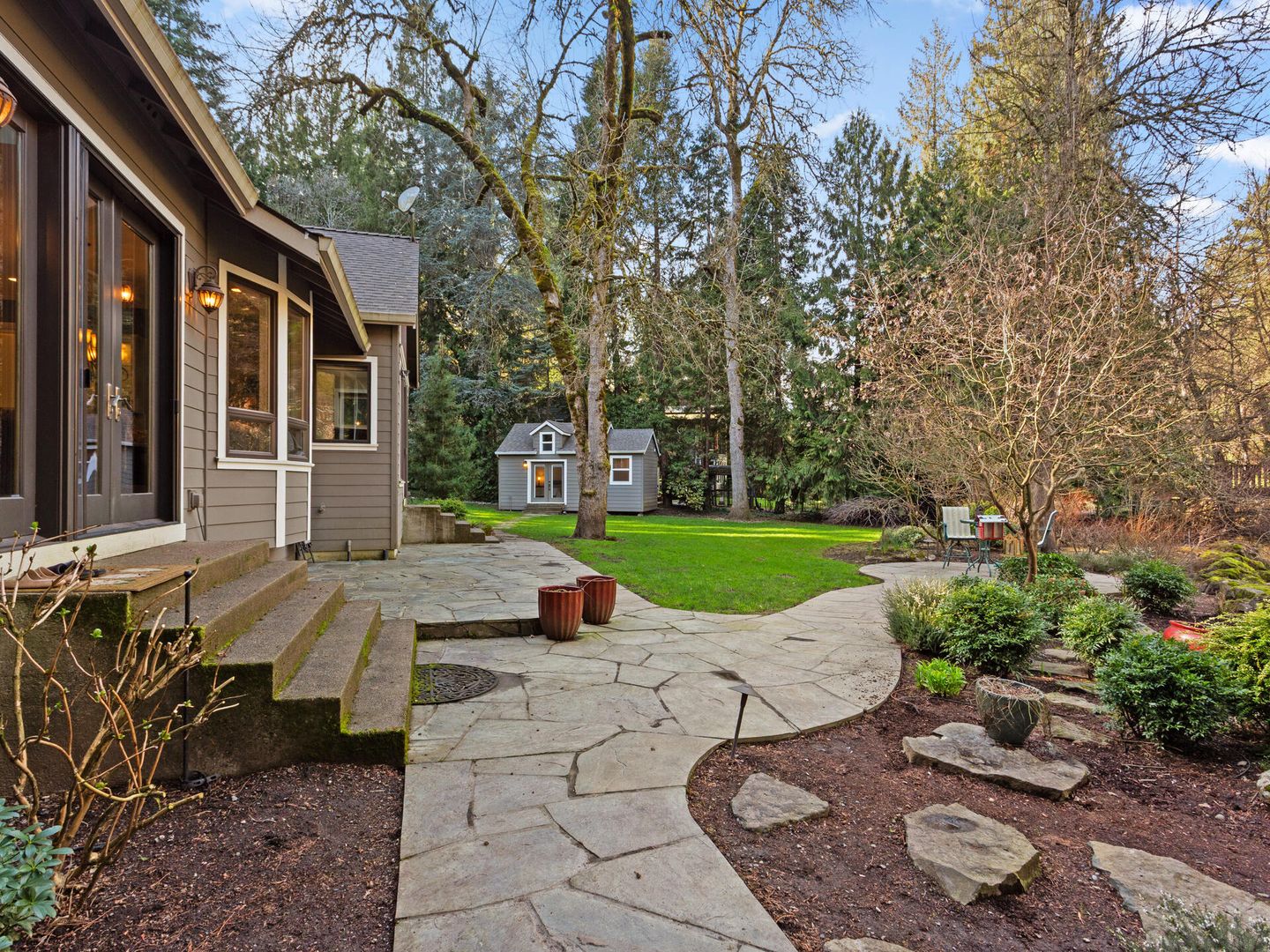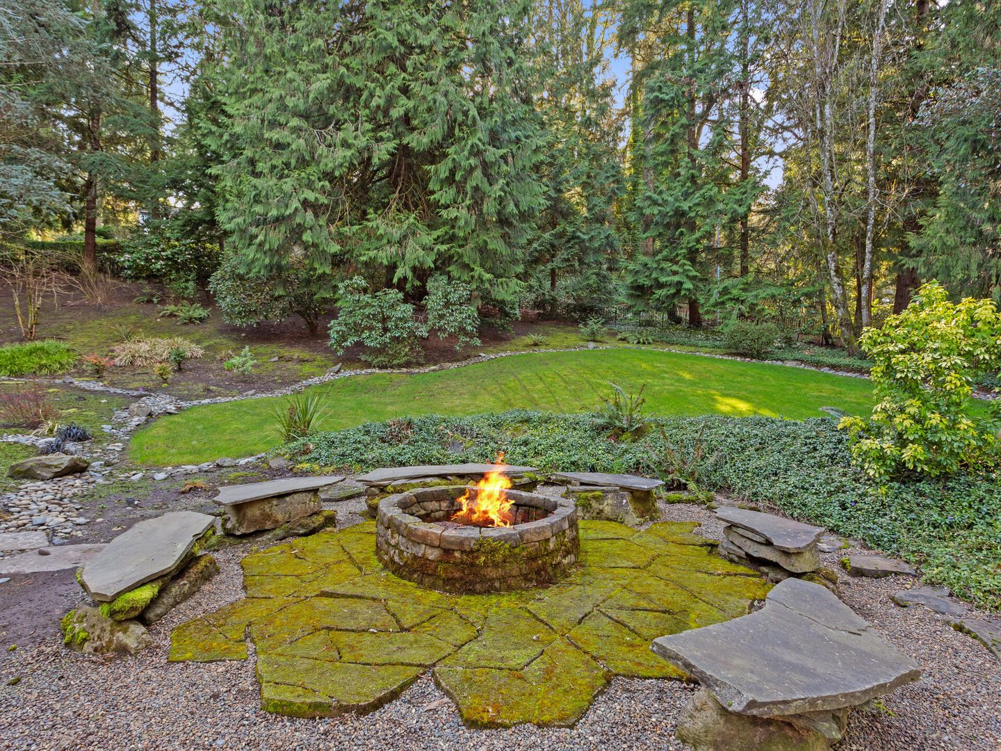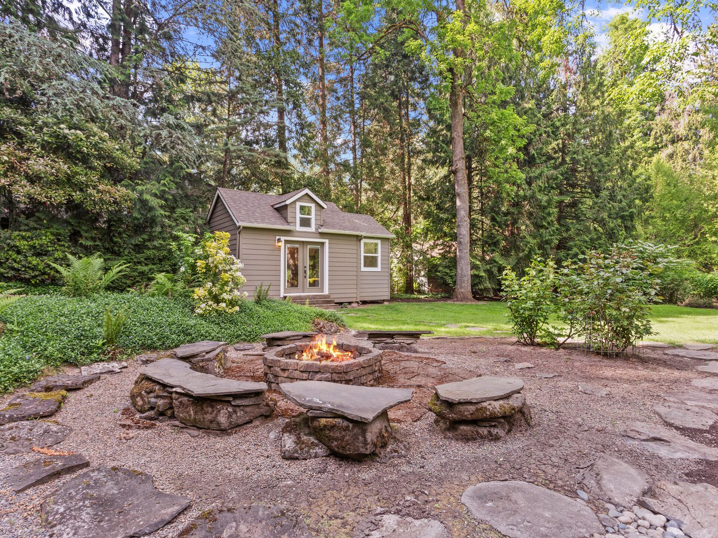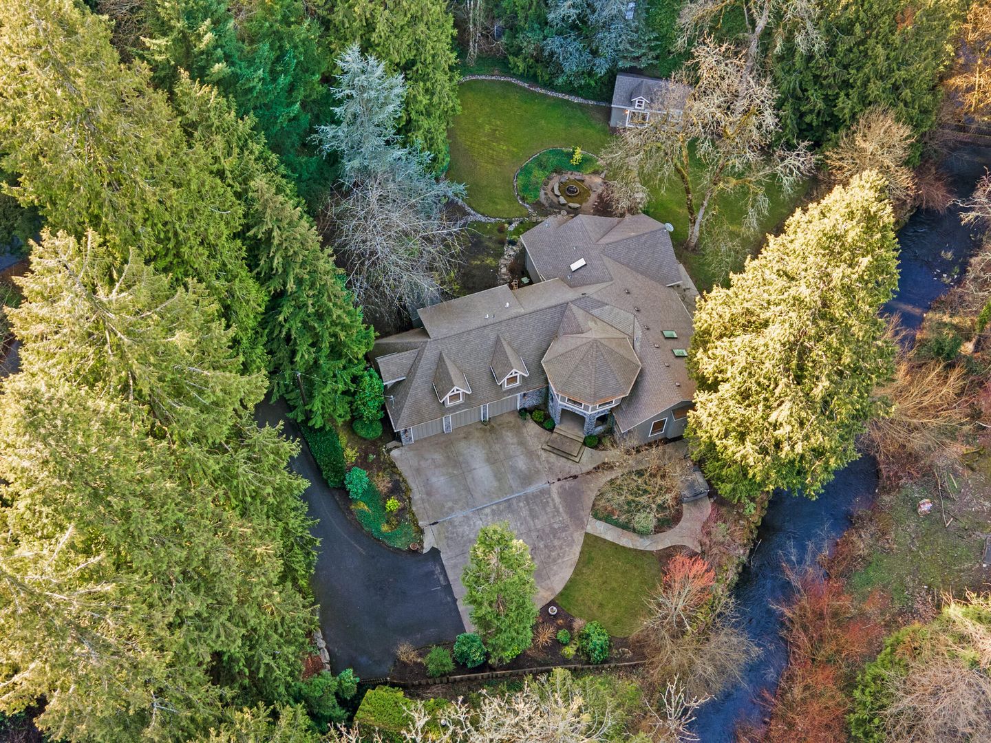 • Over 1 acre level lot with flagstone patio, gazebo, hot tub, all overlooking the gorgeous peaceful stream.