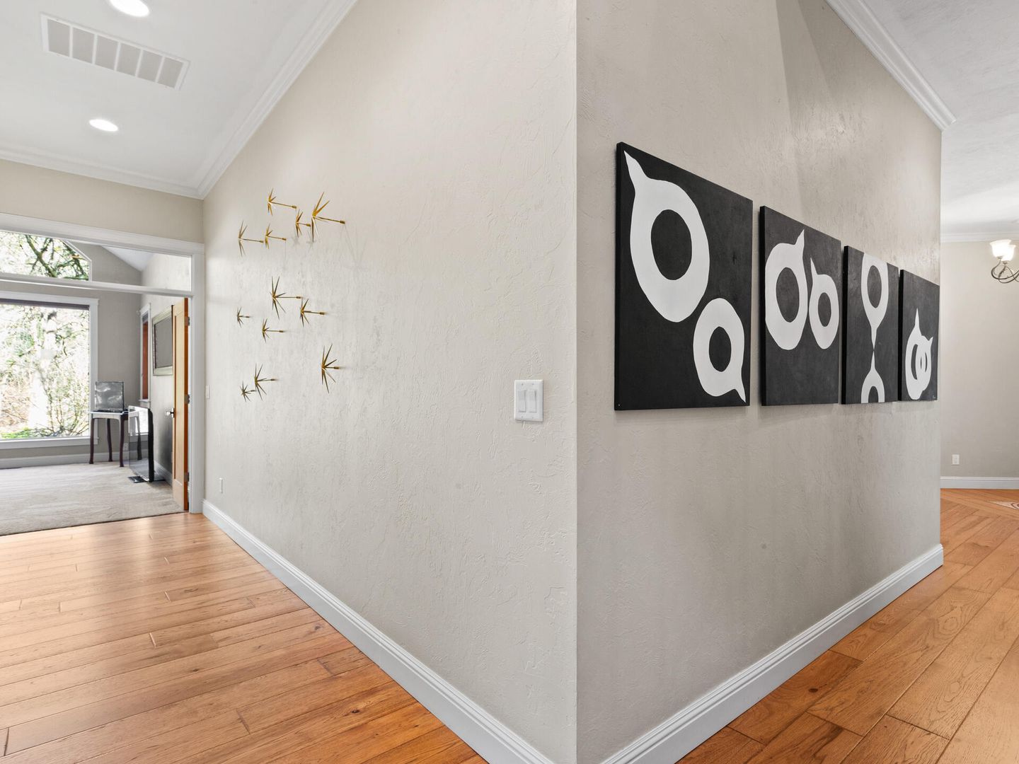 • Hardwood floors throughout main floor, high ceilings, walls of windows