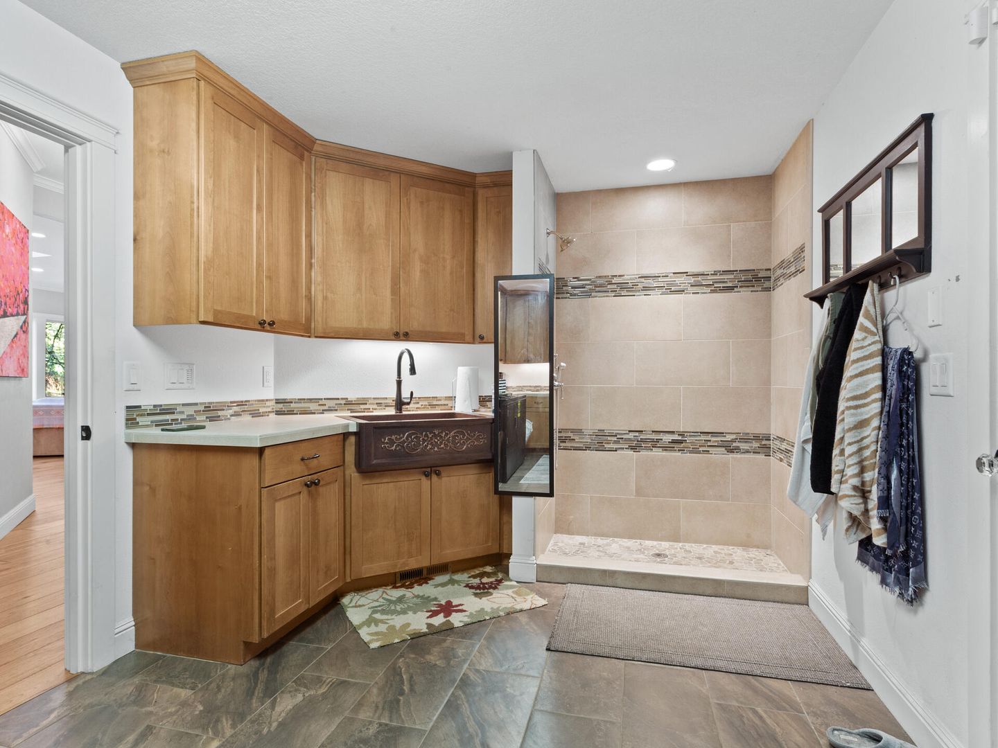 • Main floor mud room with custom doggie shower.