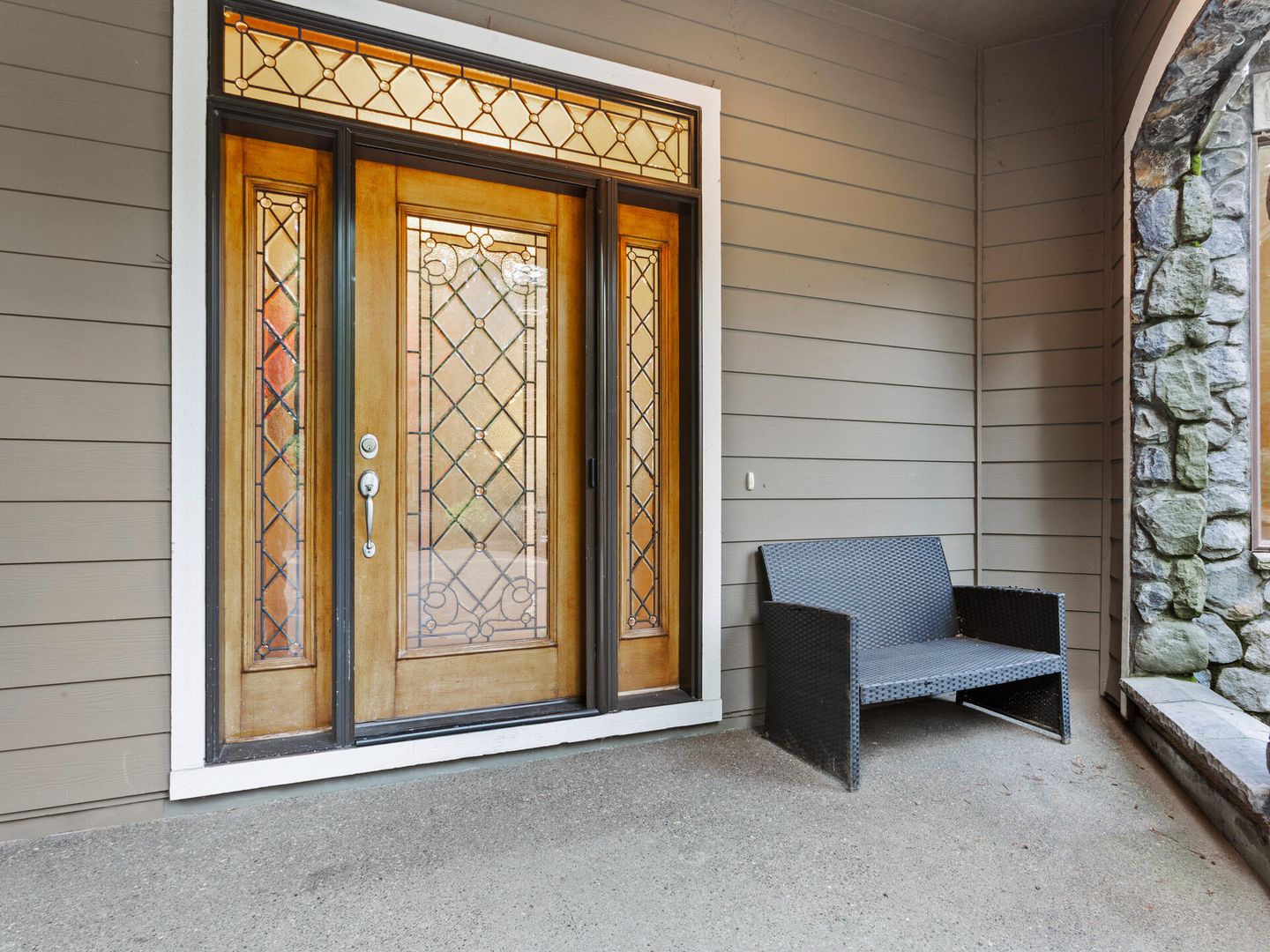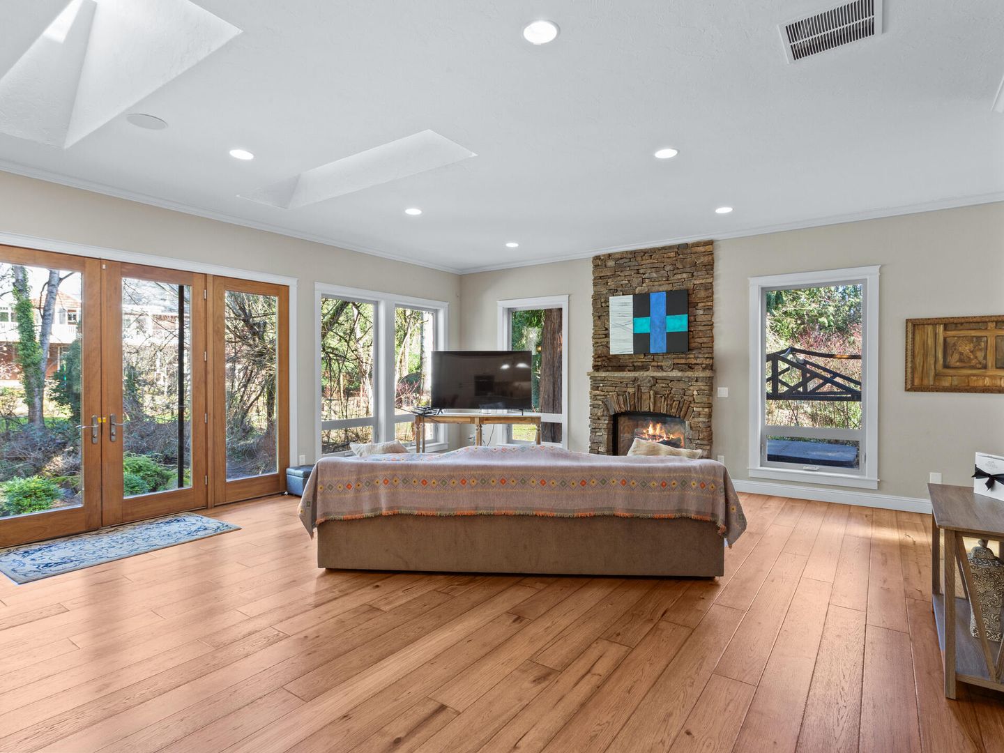 • Great room with stone fireplace and French doors to your private patio.