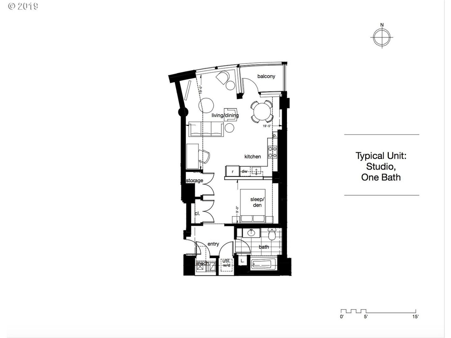 Breathtaking loft-style South facing 1-bedroom with amazing views of the West Hills. Unique John Ross elliptical tower of 31 floors. Features include: