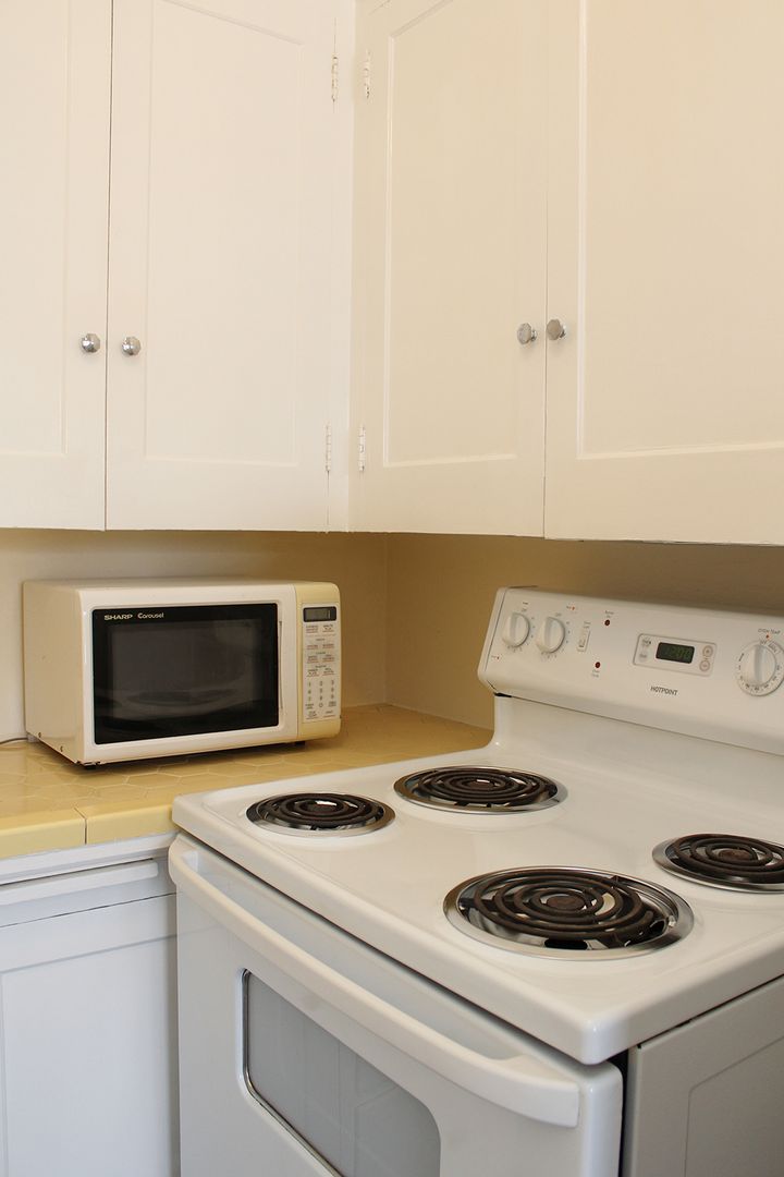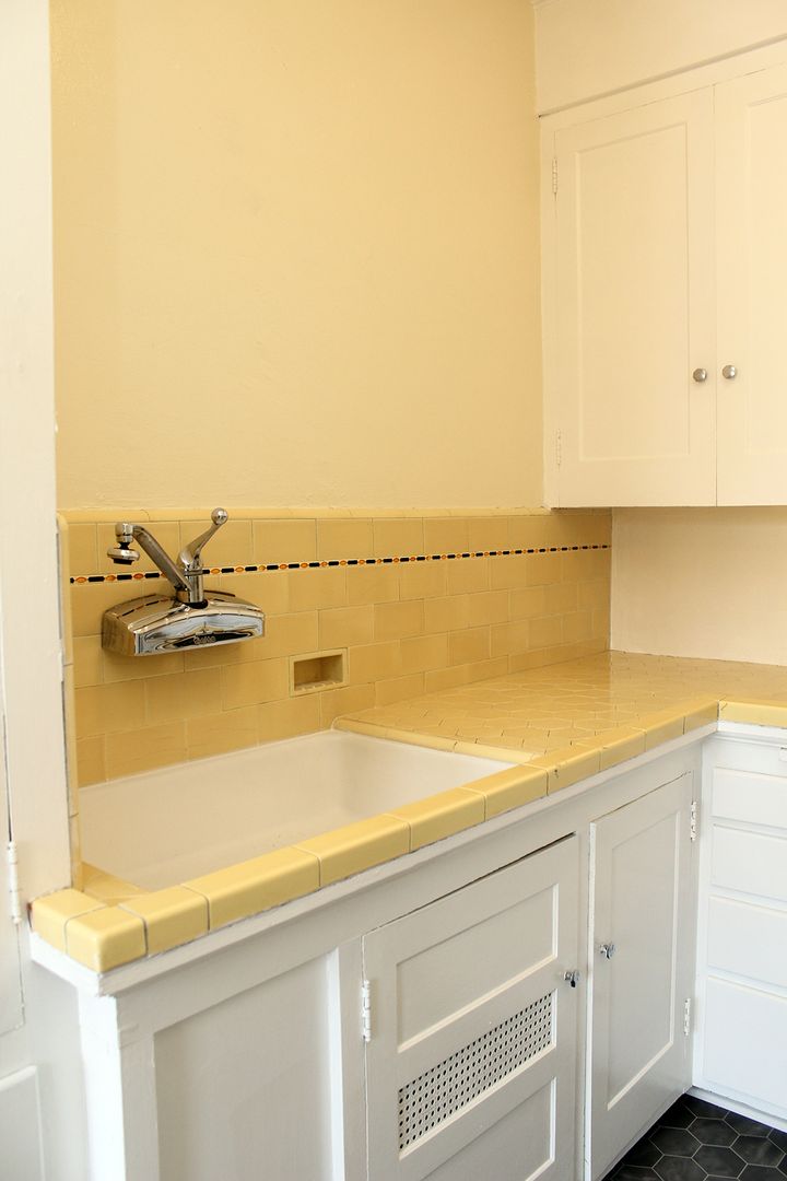 • Vintage Kitchen with original tile counters, newer appliances and brand-new flooring