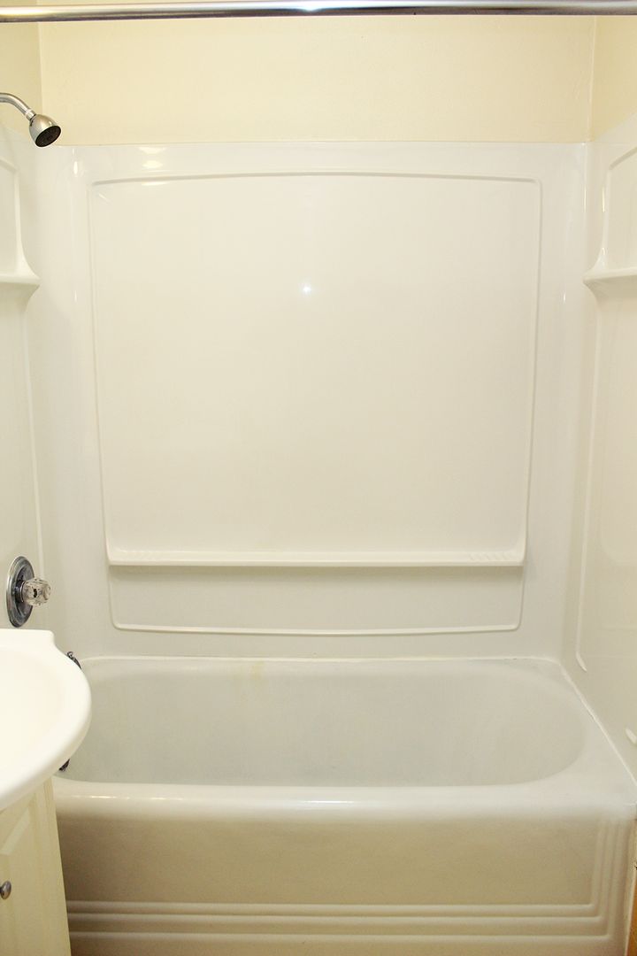 • Updated bathroom has original tile floor but new vanity, re-glazed bathtub and new shower surround