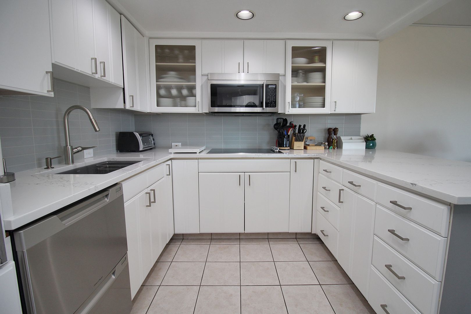 • Beautiful, remodeled kitchen with quartz counter tops, tile floor & stainless appliances