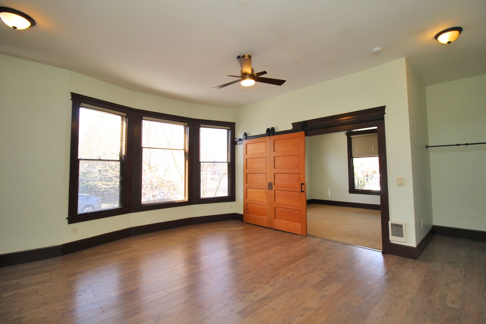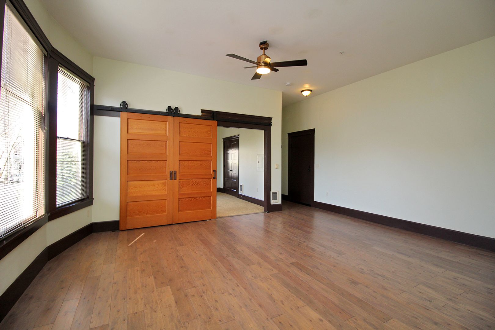 • Large front Bedroom has reclaimed sliding barn-style door and large closet
