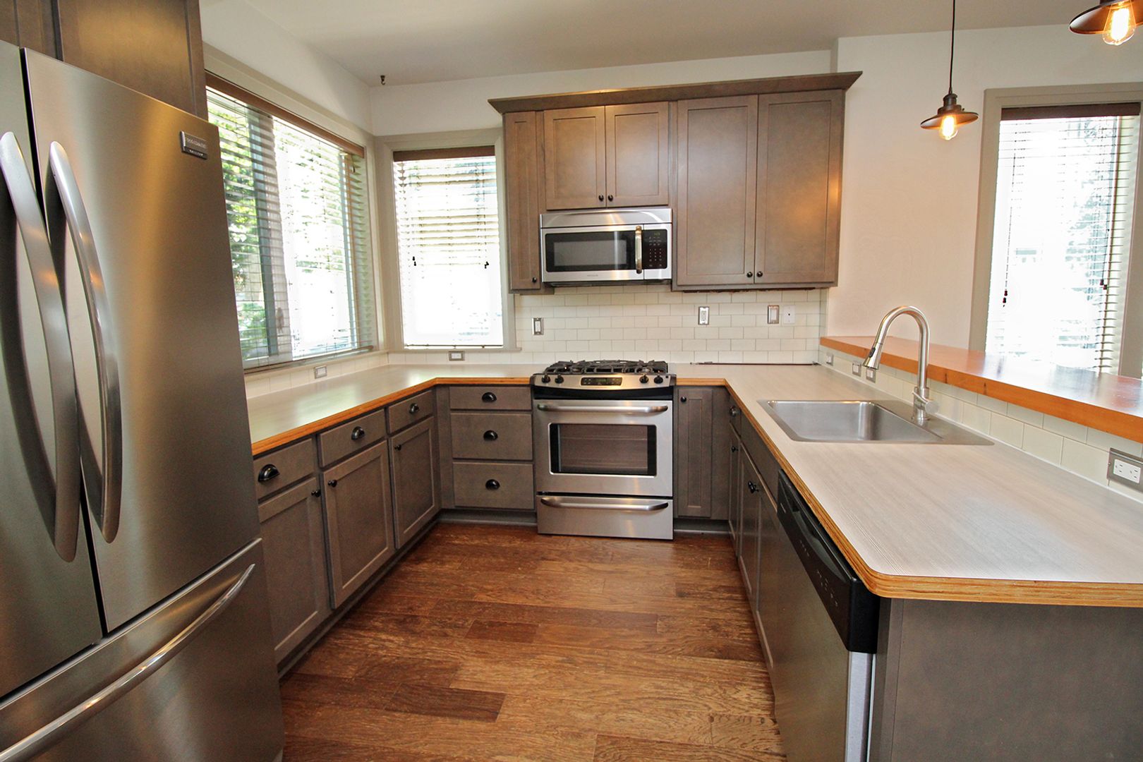 • Fabulous open Kitchen with Breakfast Bar, stainless appliances with pro-series gas range, and classic subway tile.