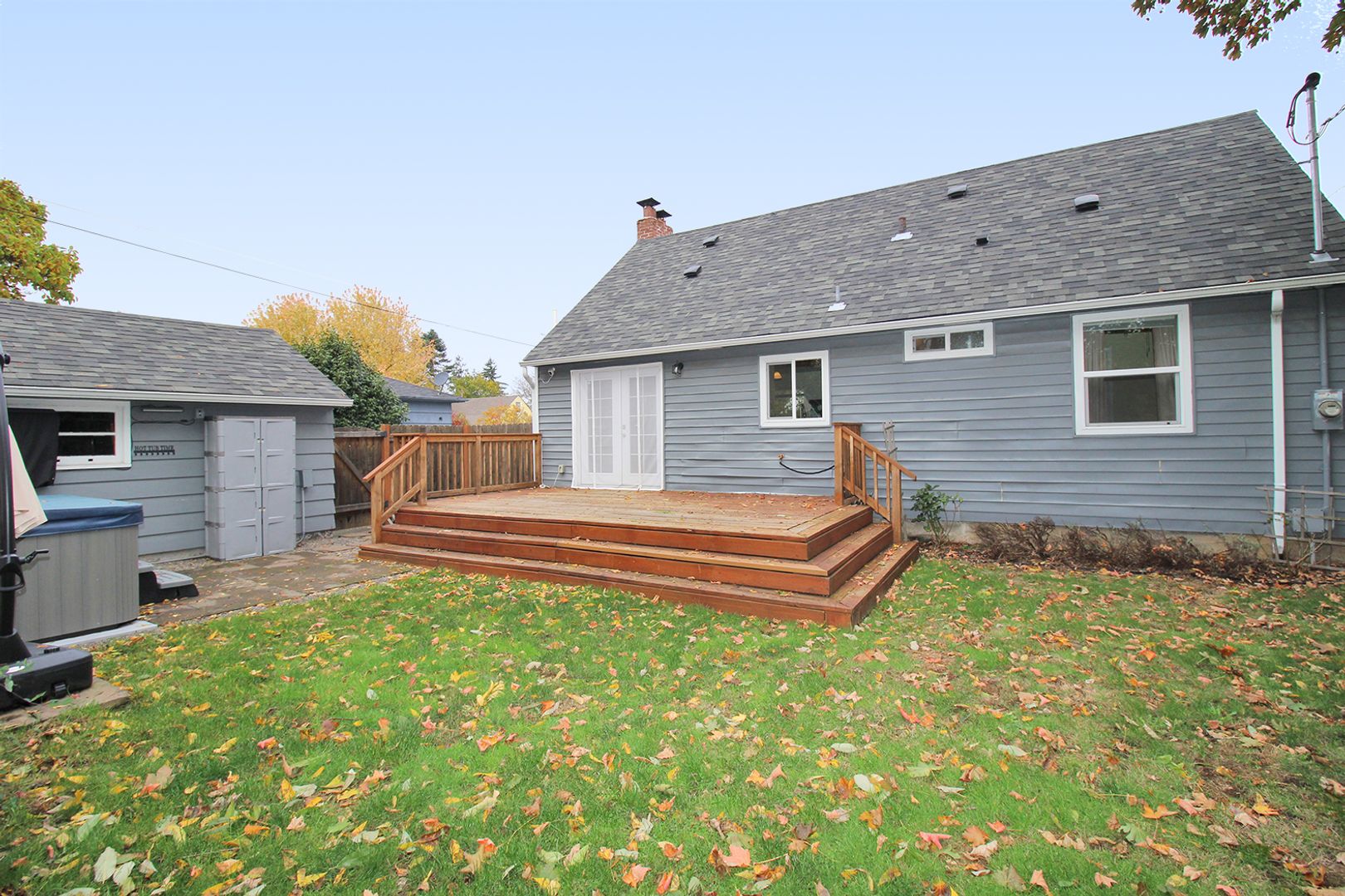 • Large backyard features the back deck, garden boxes, firepit and hot-tub.