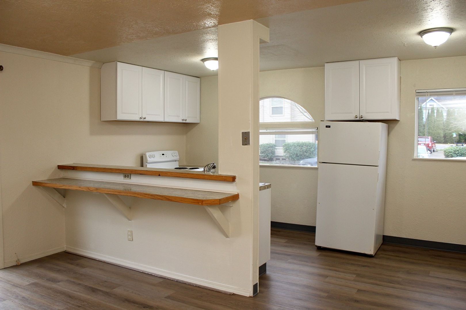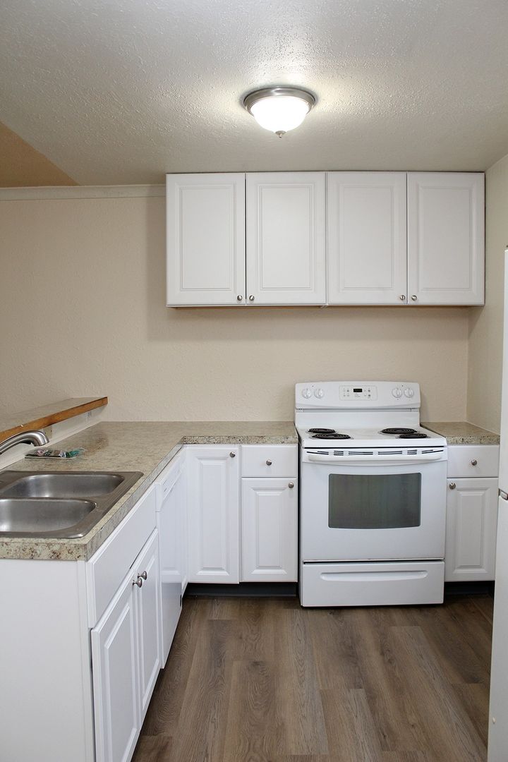 - One full bath with tub and tiled shower surround