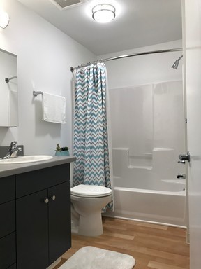 • Full bath/shower-tub combo, convenient built-in mirror/
