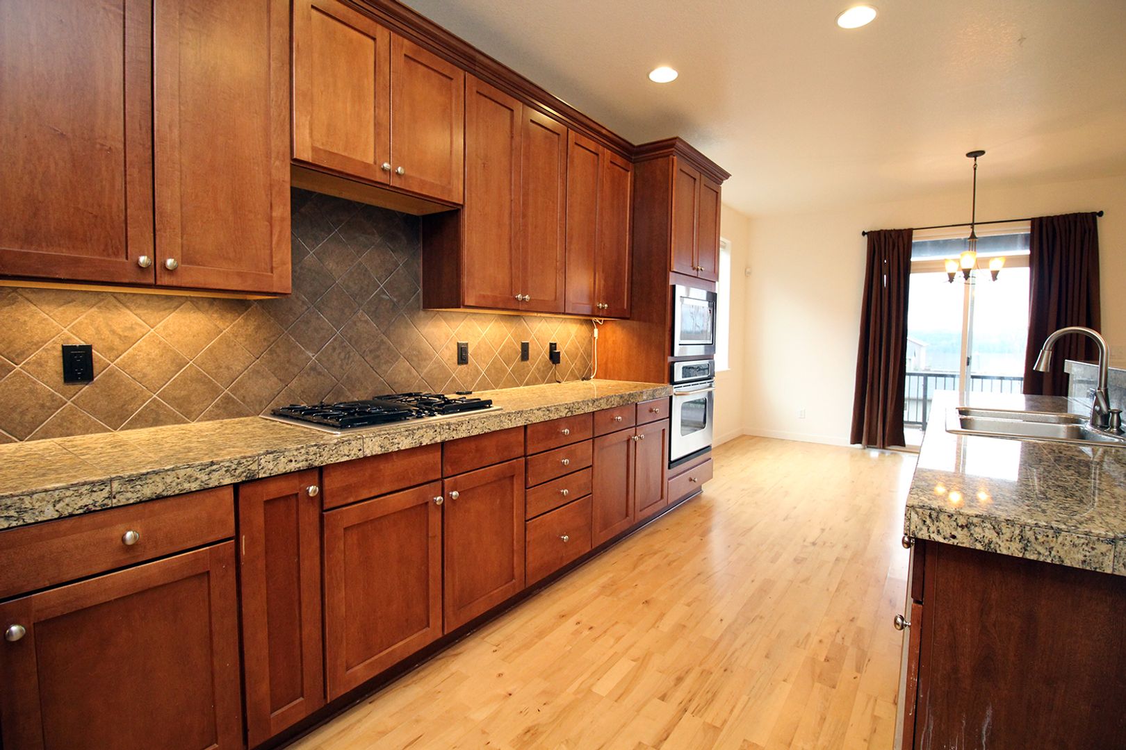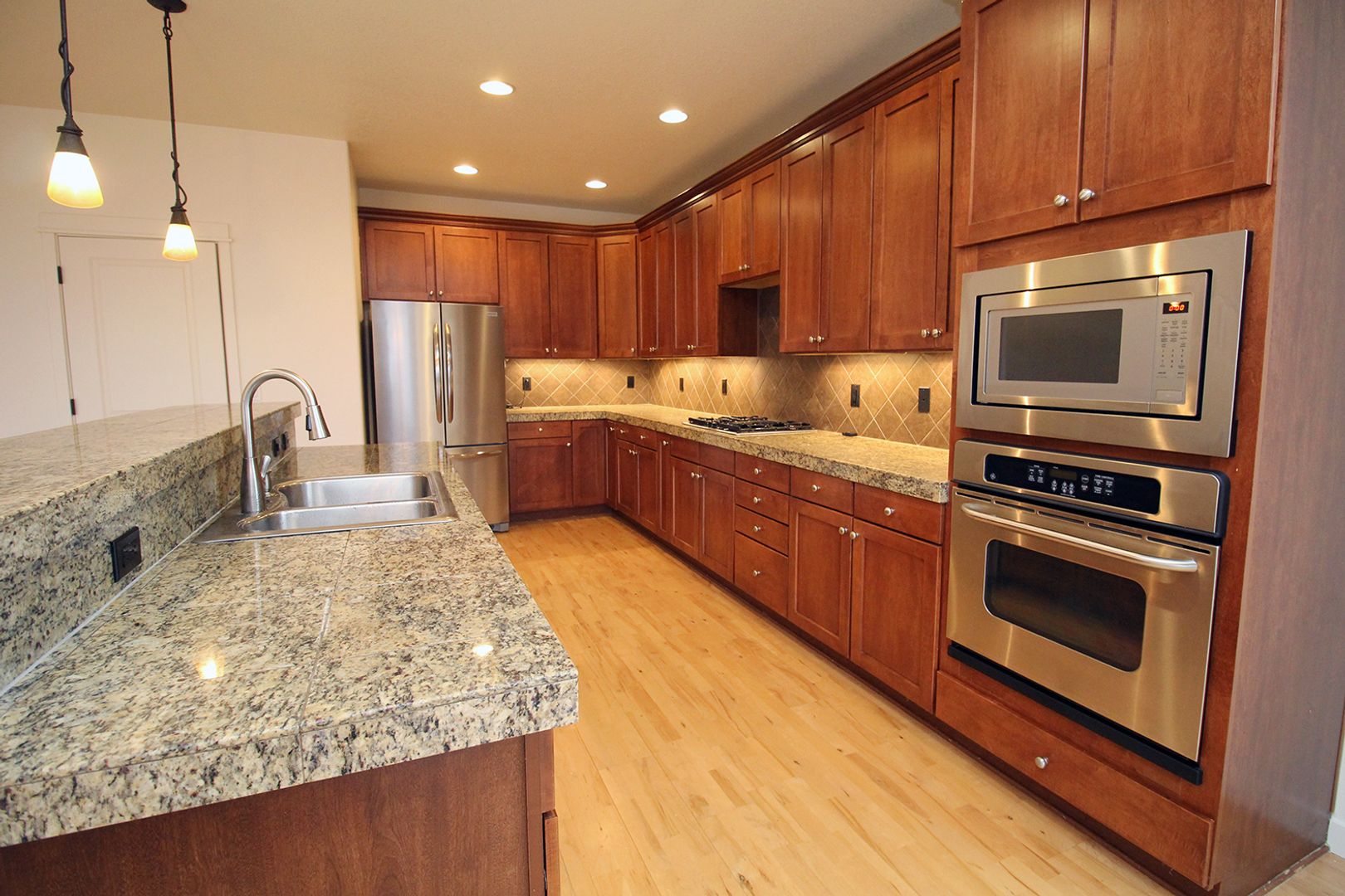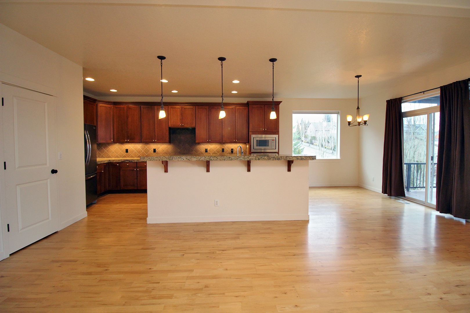• Huge open Kitchen with large eating area with stainless GE Profile appliances, huge island with breakfast bar, large pantry and an eating area with slider to deck.