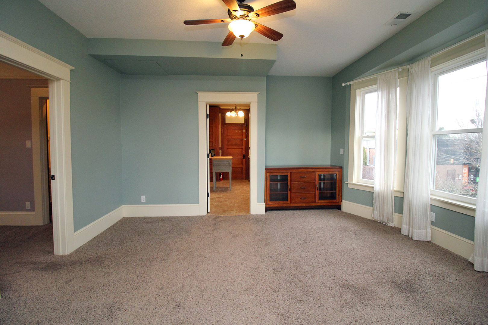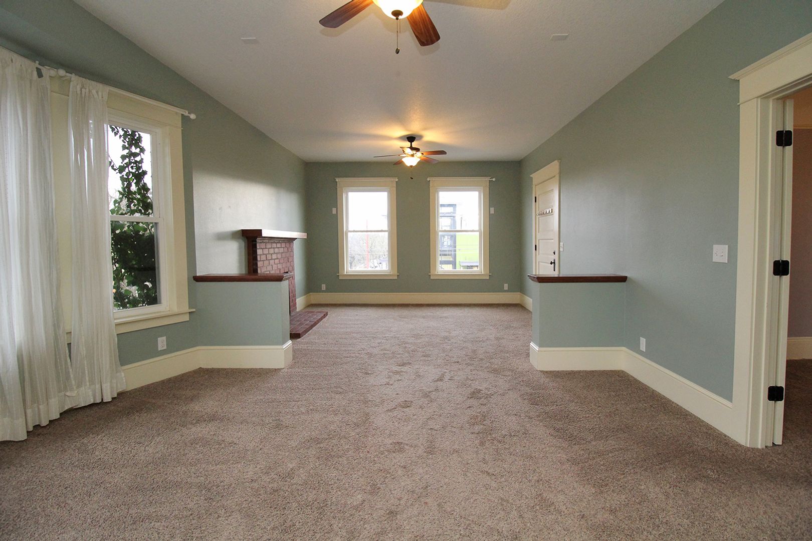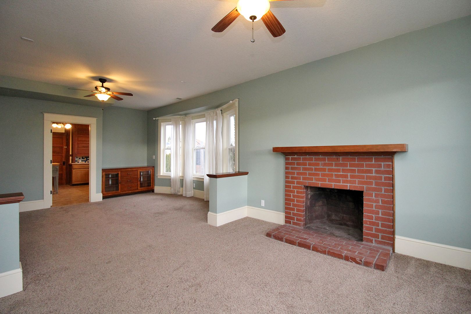 • Living room looks out over Hawthorne Blvd and features a decorative red brick fireplace