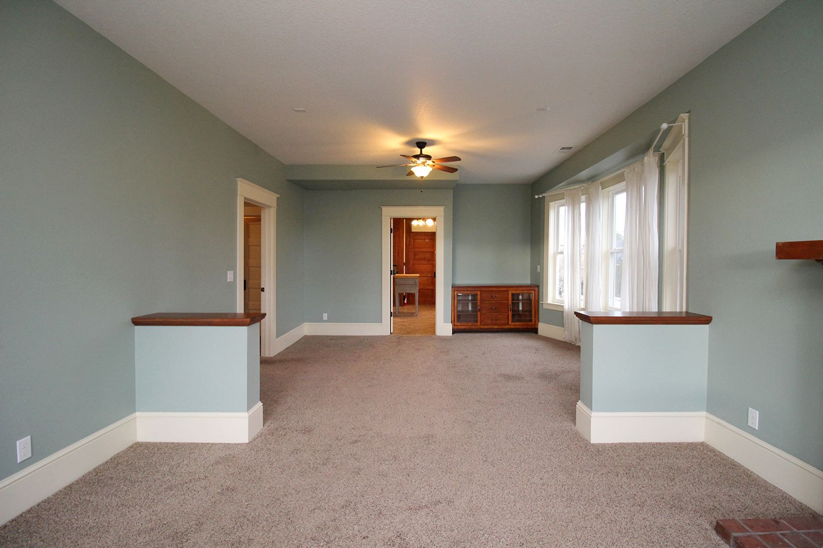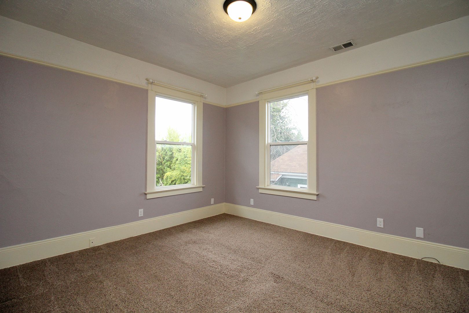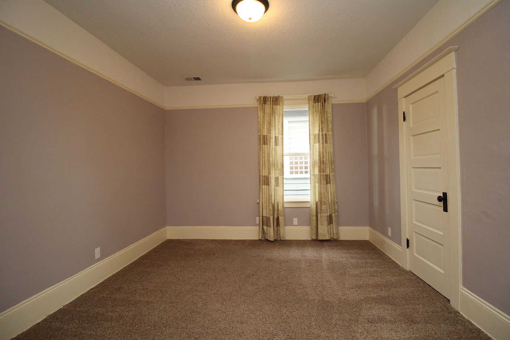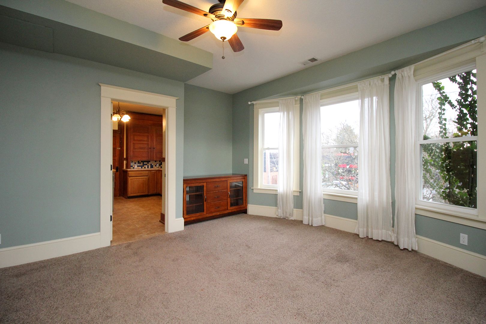 • Living room looks out over Hawthorne Blvd and features a decorative red brick fireplace