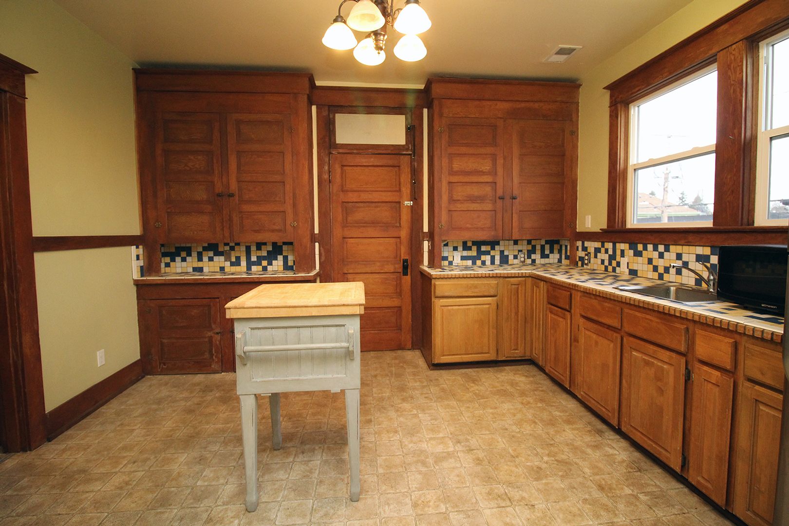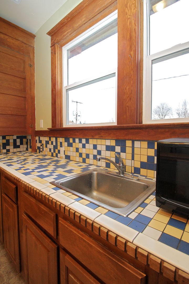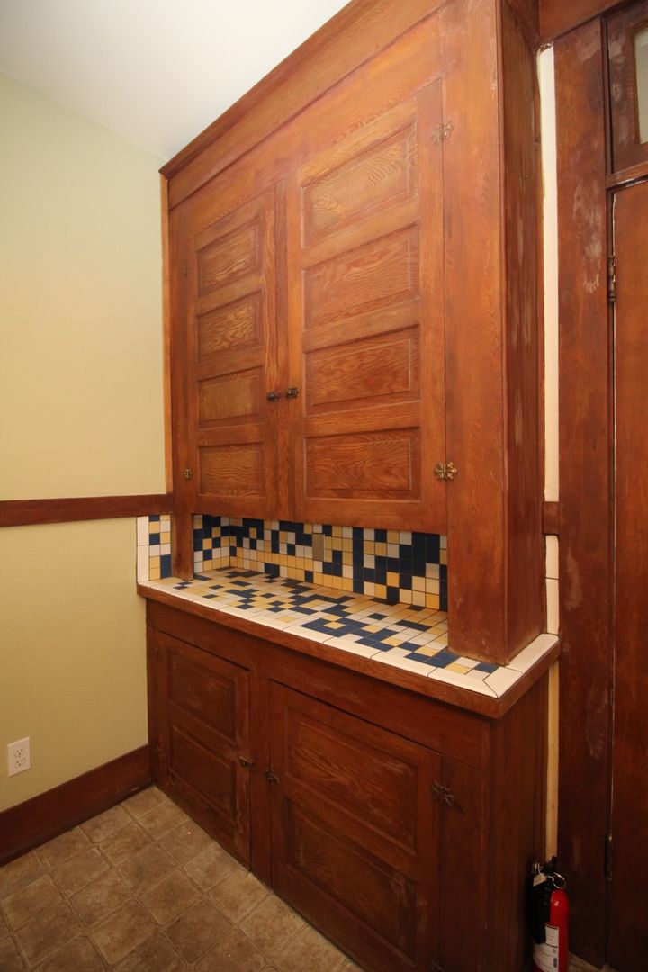 • Fabulous vintage Kitchen with newer appliances, cool tiled counters and back splashes and full of beautiful original unpainted cabinetry - lots of storage space!