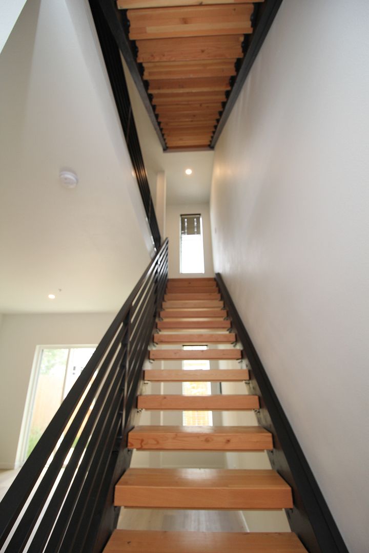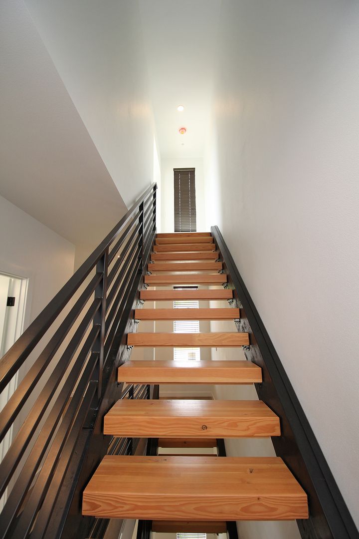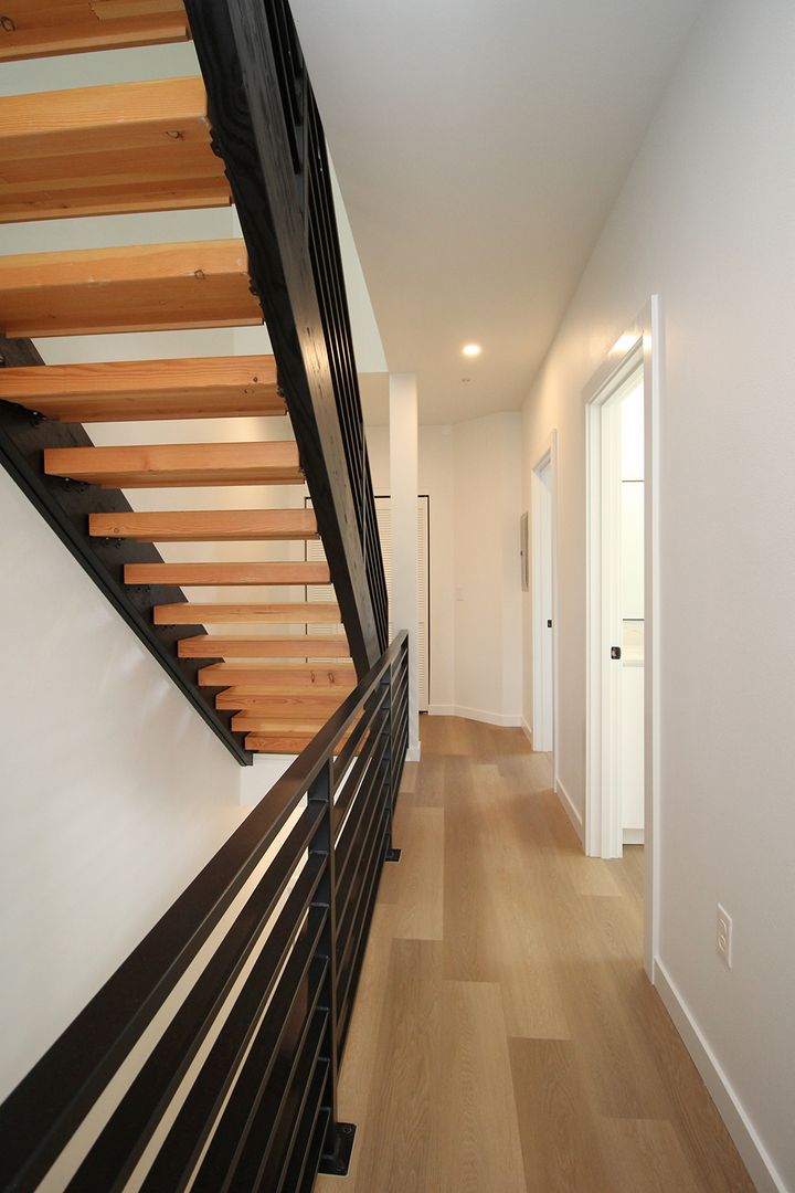 • Open floor plan with high ceilings, hardwood floors and floating stairs