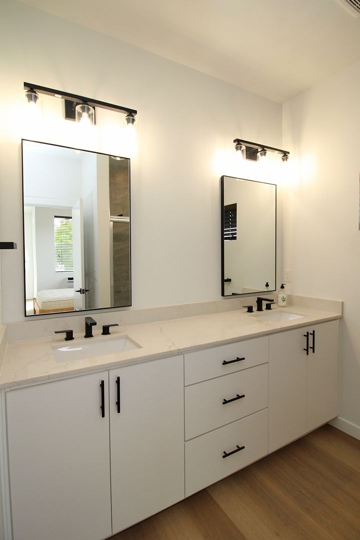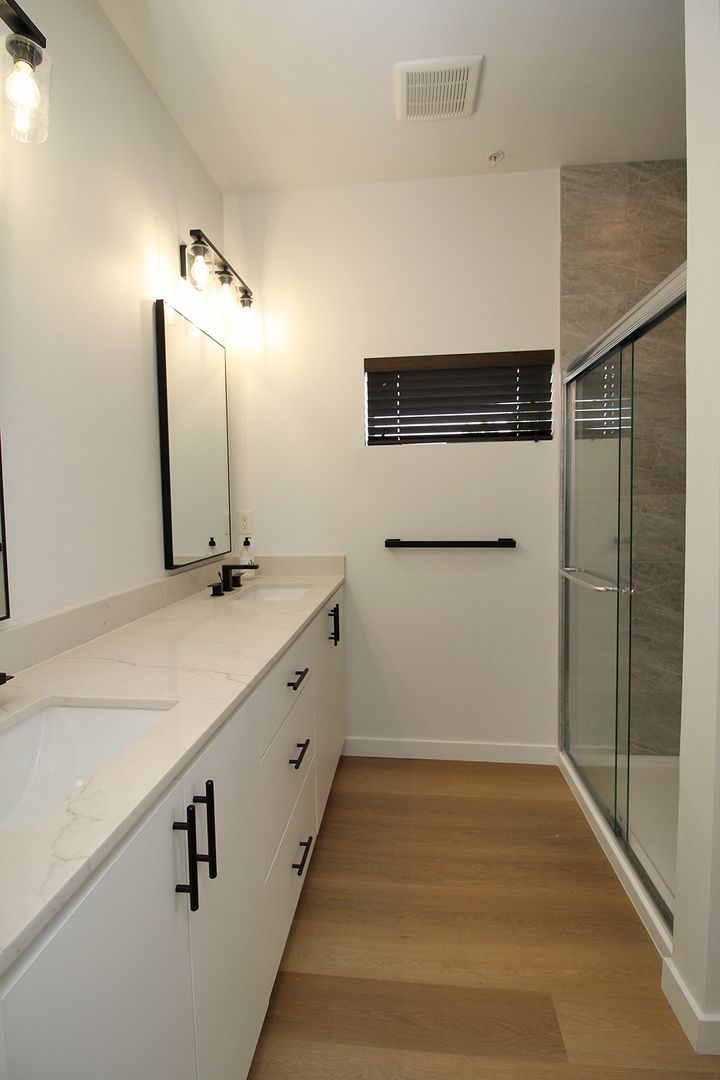 • The attached Bathroom has quartz-topped vanity with dual sinks, step-in shower and large walk-in closet.