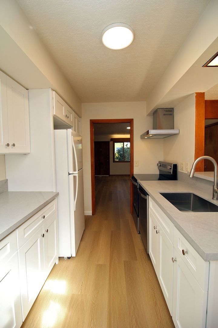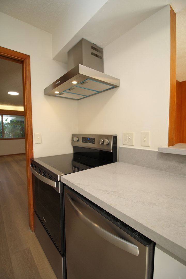 • Totally remodeled Kitchen with quartz counters, new cabinetry, new appliances & new Marmoleum Flooring.