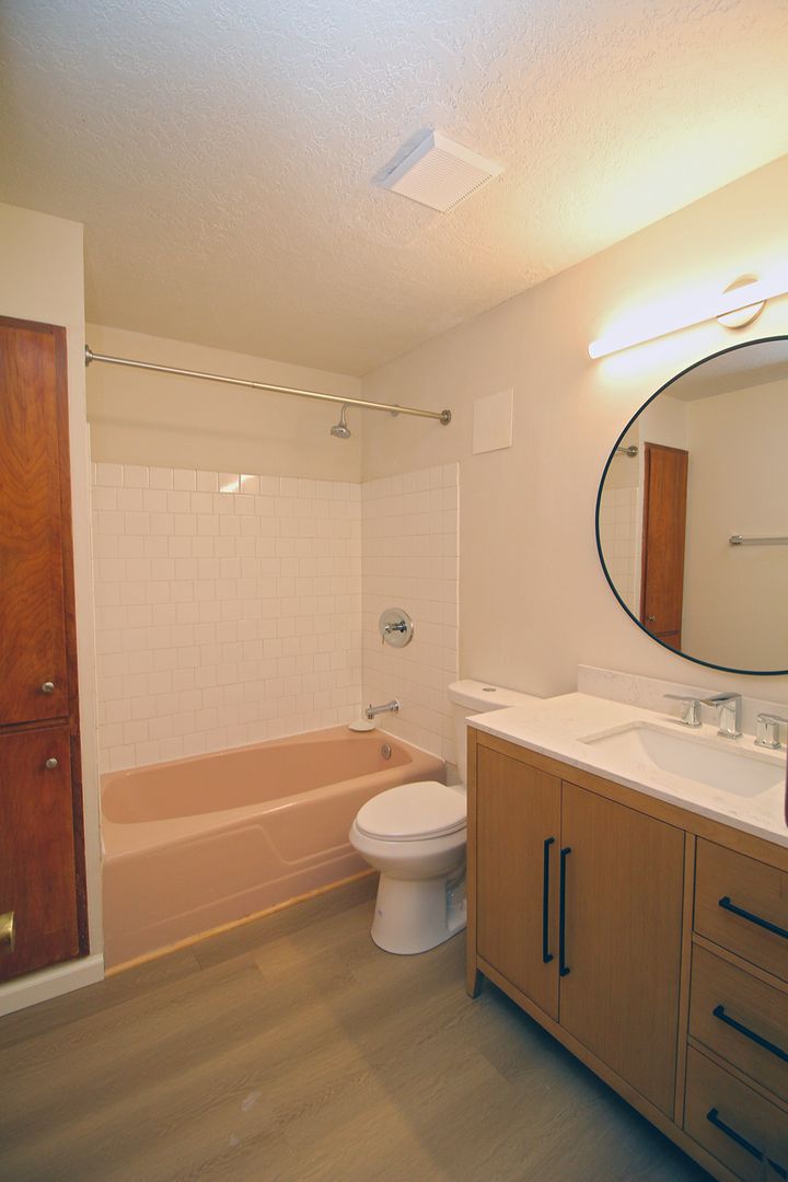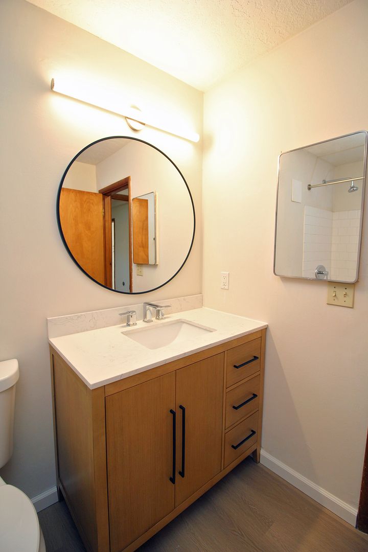 • Nicely updated Bathroom features new tiled flooring, new vanity & mirror and new shower surround.