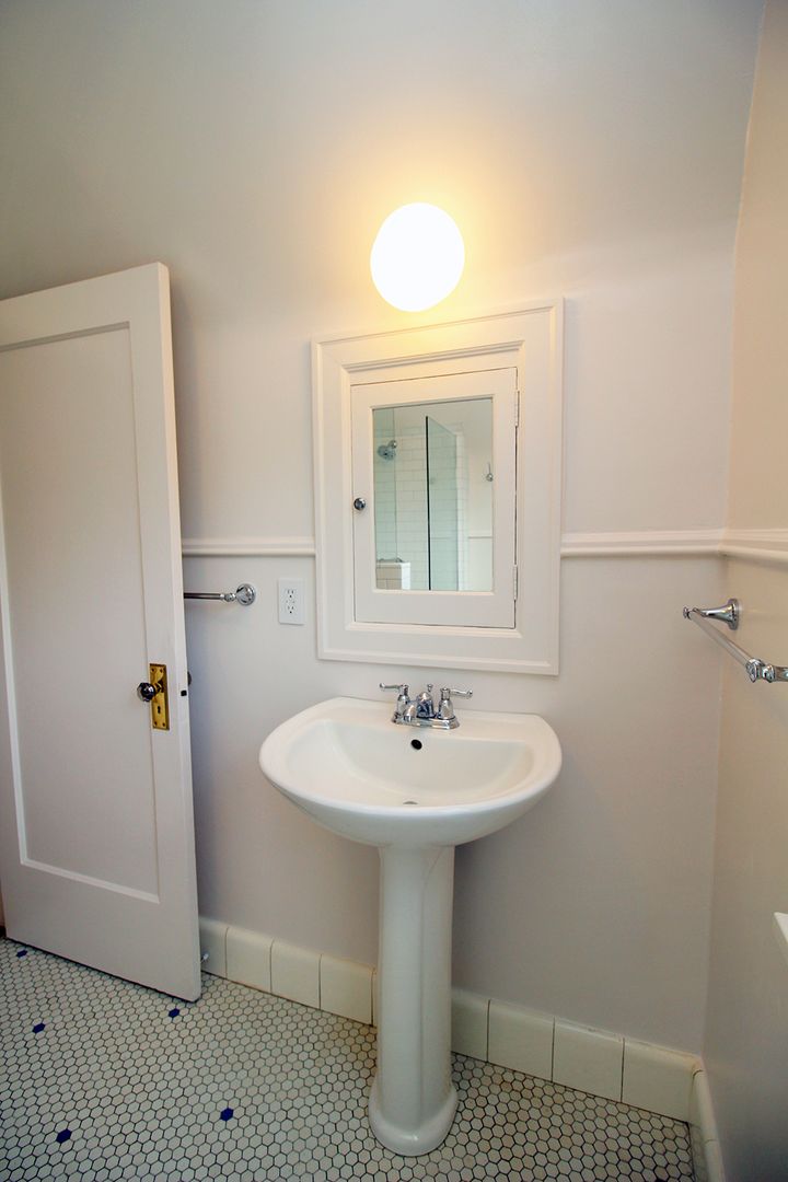 • Brand new Bathroom with pedestal sink, period appropriate hex and subway tiles, and fabulous glass enclosed shower
