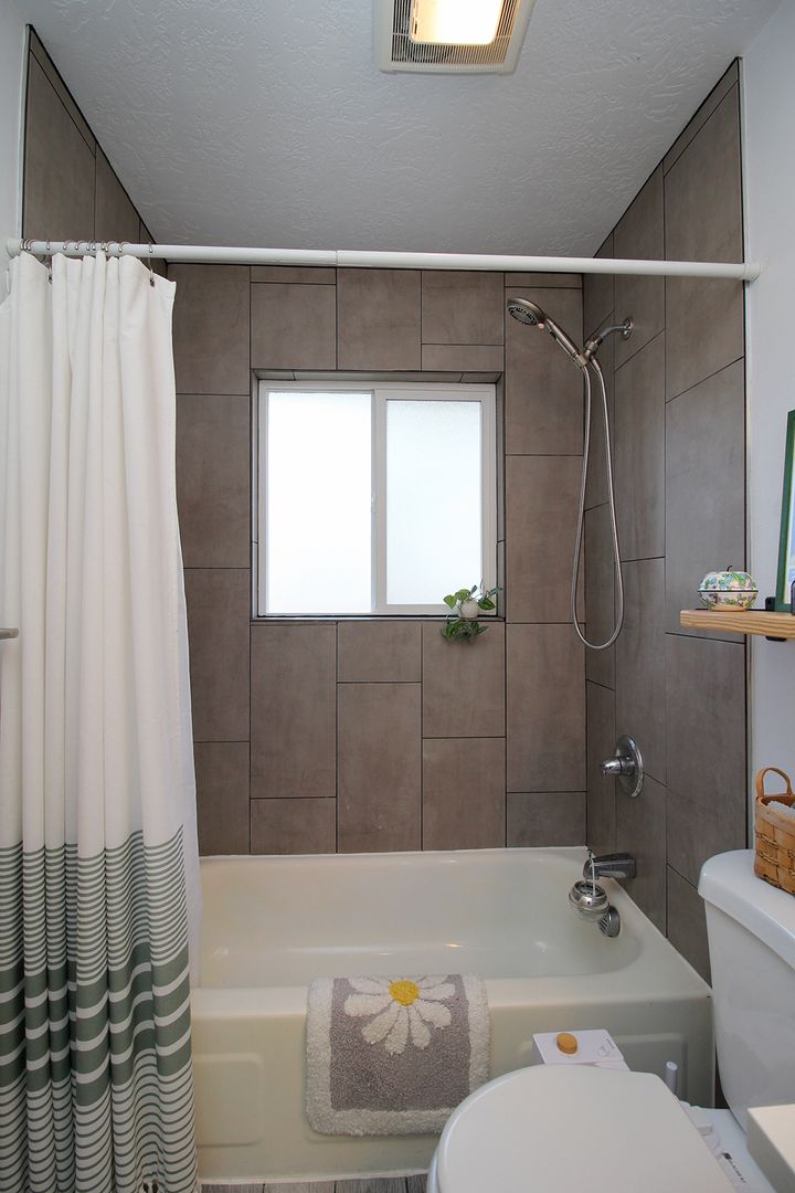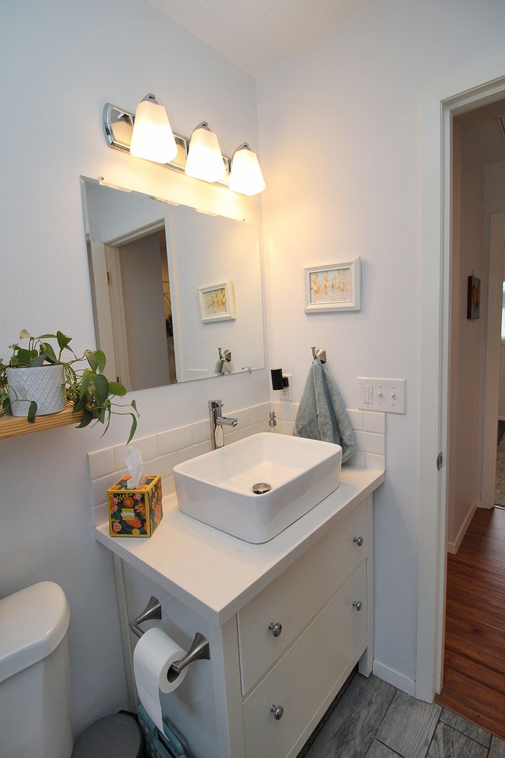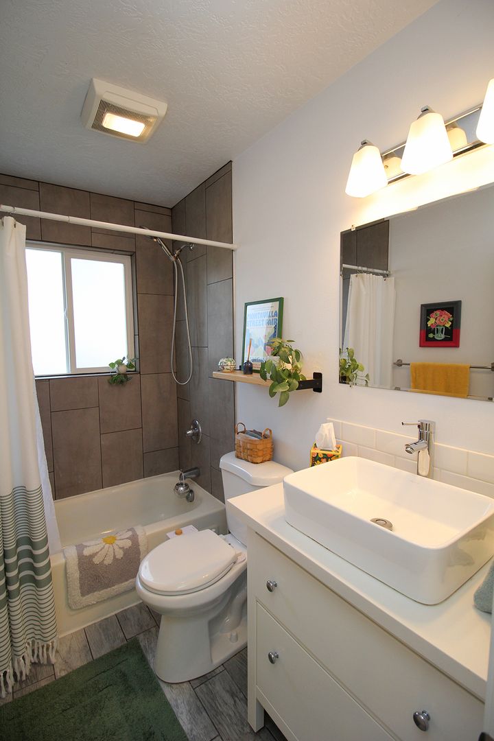 • Beautifully updated Bathroom with tiled shower and vanity with raised sink.