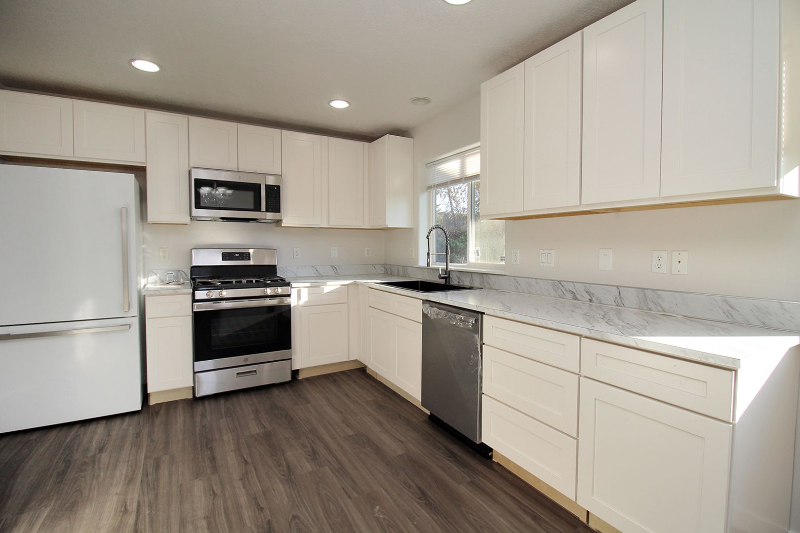 • Brand new kitchen features all new cabinetry, counters, and appliances.