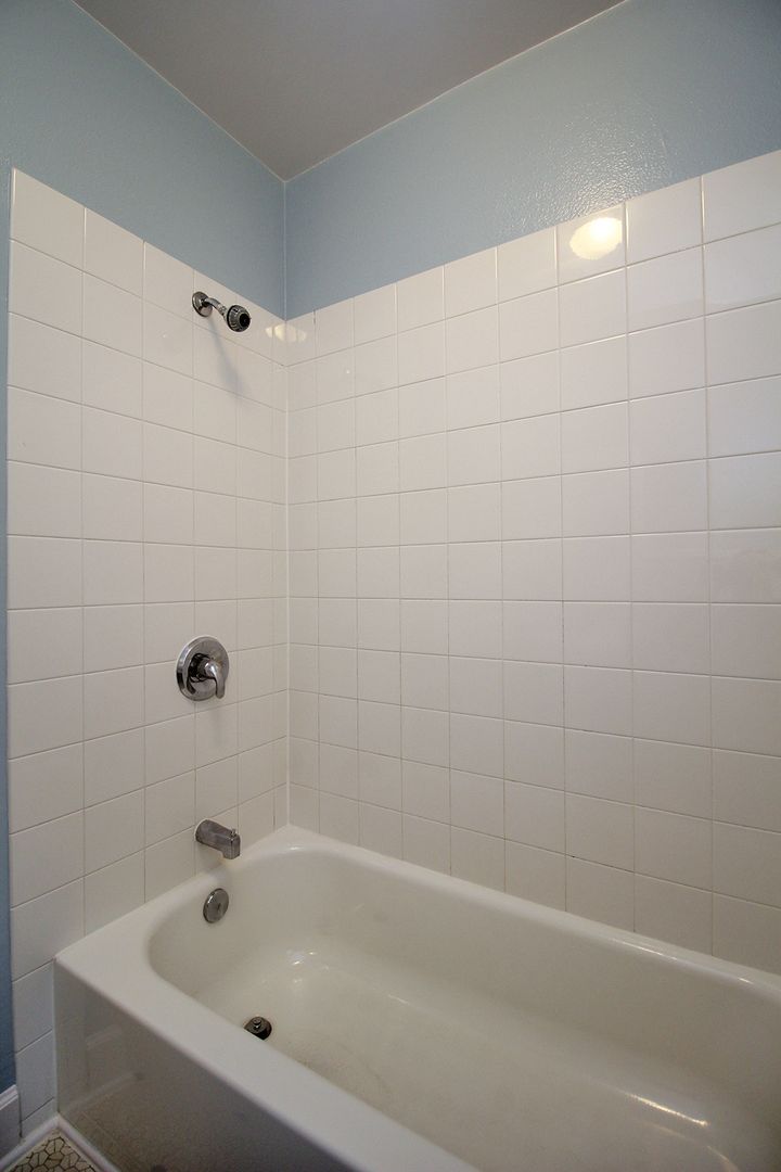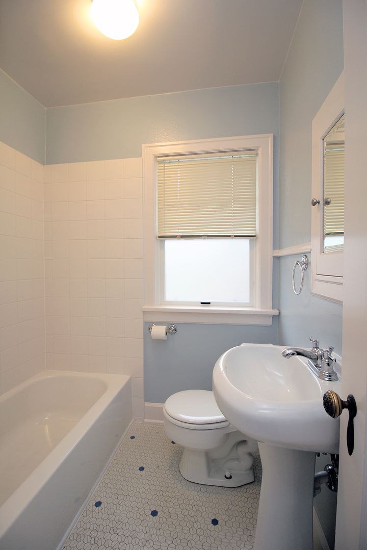 • Character-rich bath with tub, pedestal sink, and period honeycomb tile