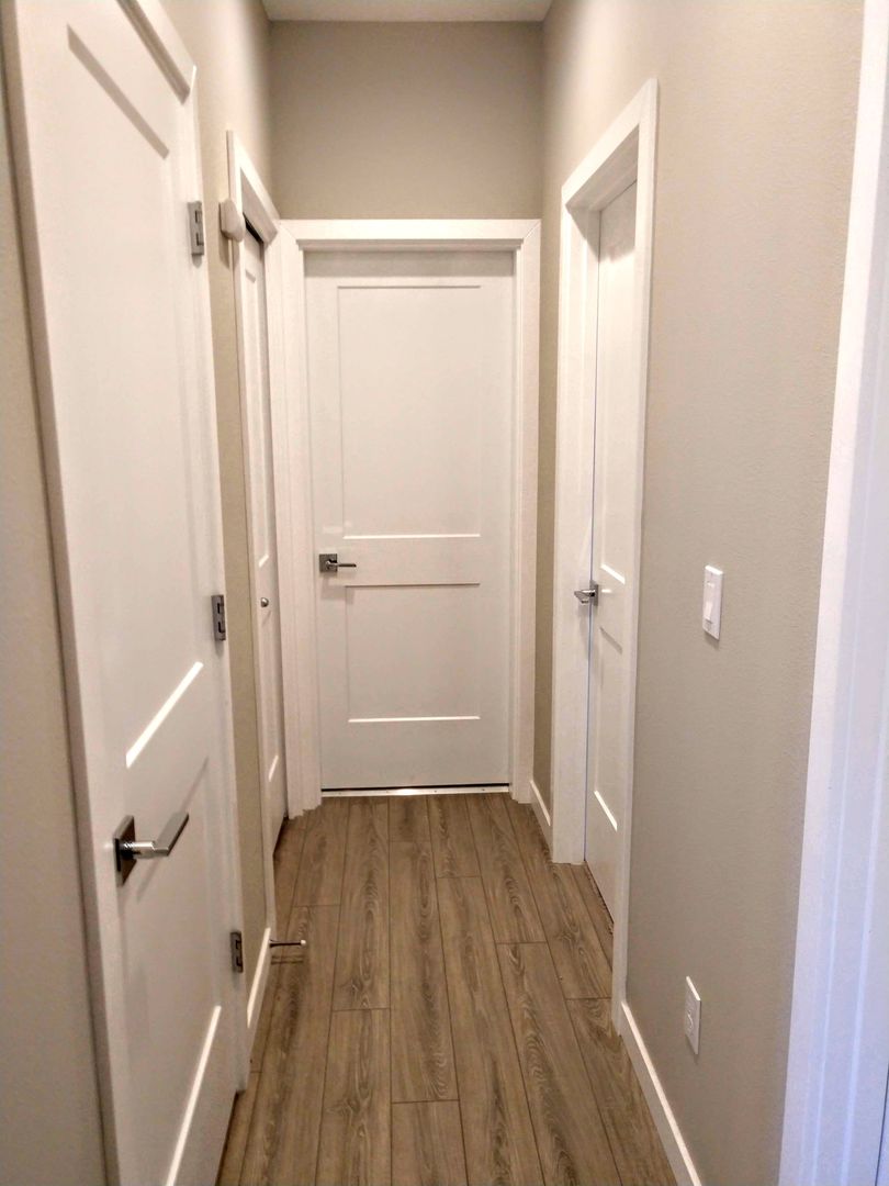 - vinyl hardwood in front, carpets in bedroom