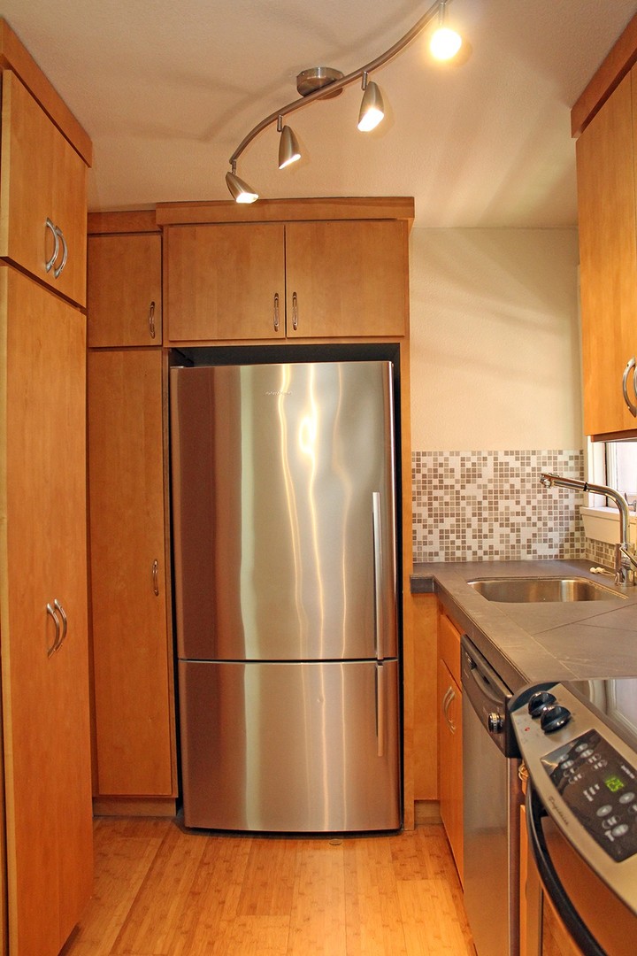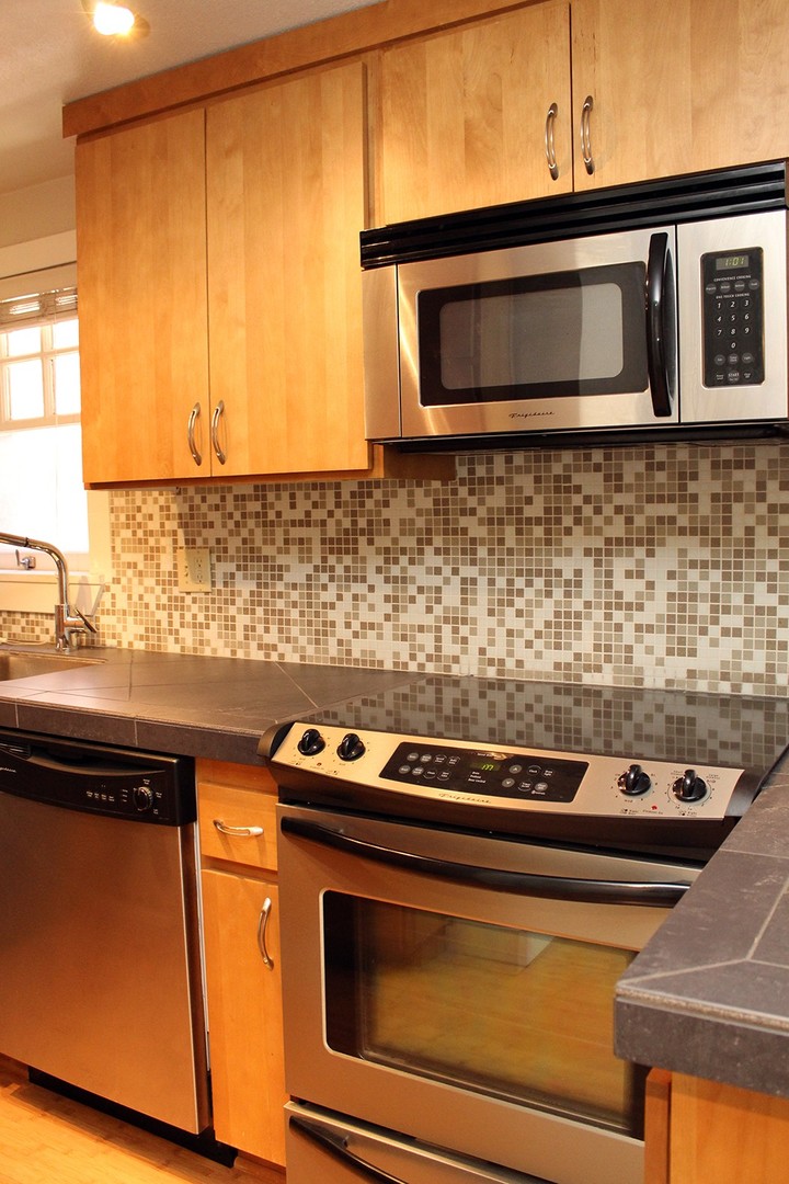 - Updated kitchen with stainless steel appliances and slate counters