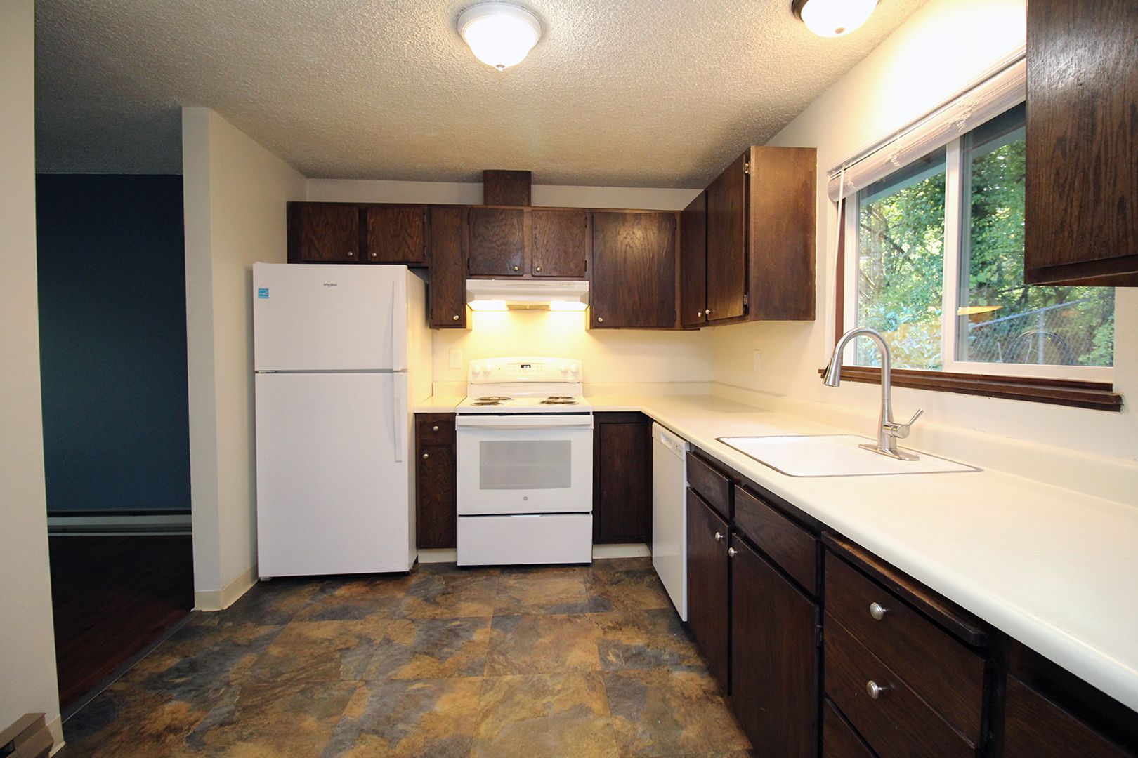 • Large Kitchen with lots of cabinetry for storage and includes a dishwasher and new range & fridge