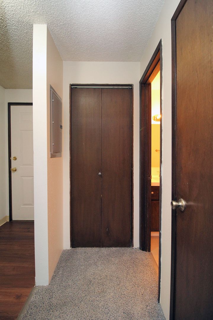 • Laminate wood flooring with carpeted bedroom