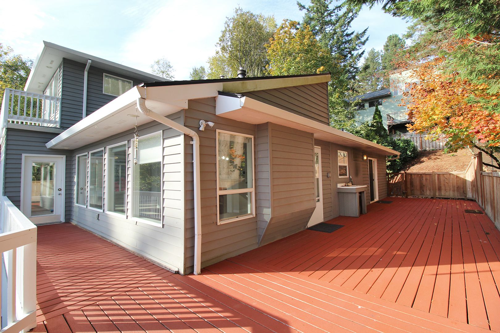 • 2 Bedrooms on the main – the larger one has vaulted ceilings, skylight, slider to the deck and direct access to the bathroom.
