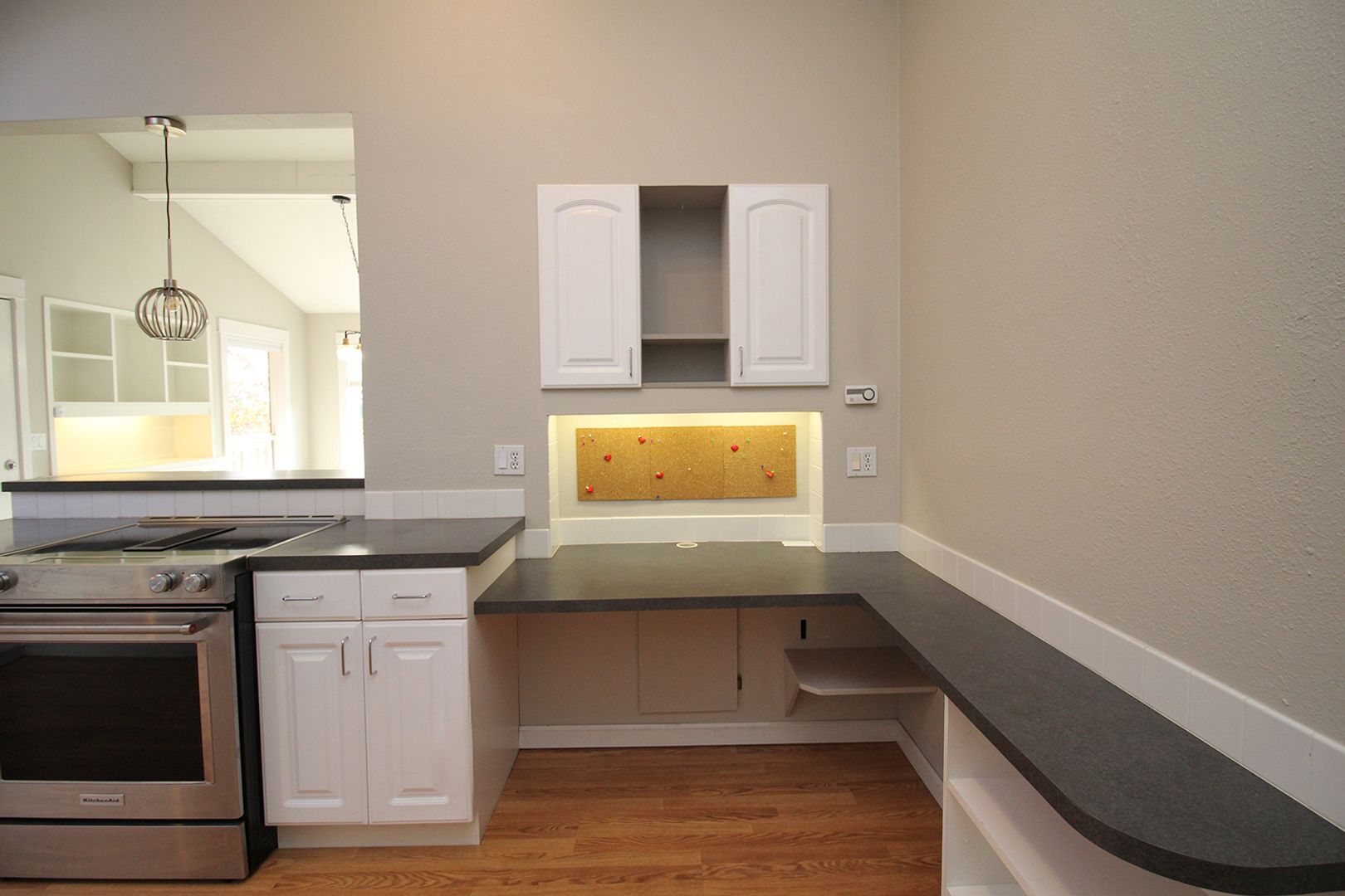 • Beautifully updated Kitchen with huge skylight, eating bar, hi-quality stainless appliances and a built-in desk