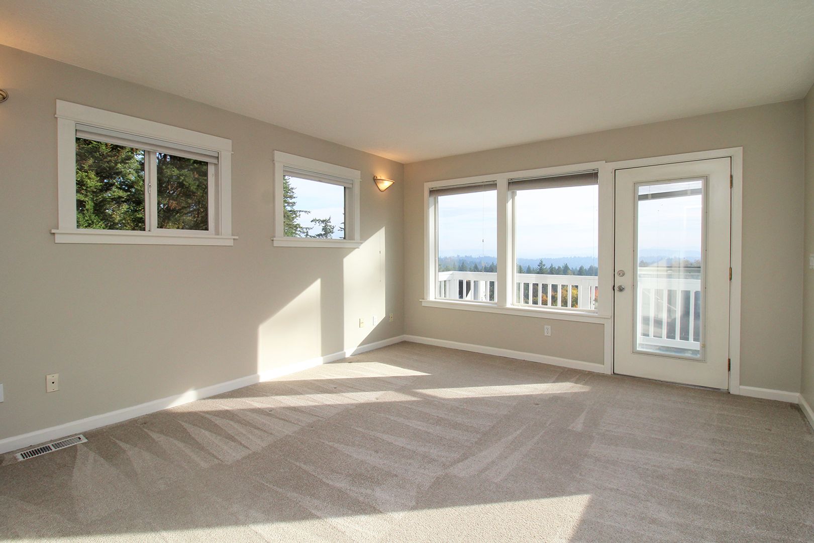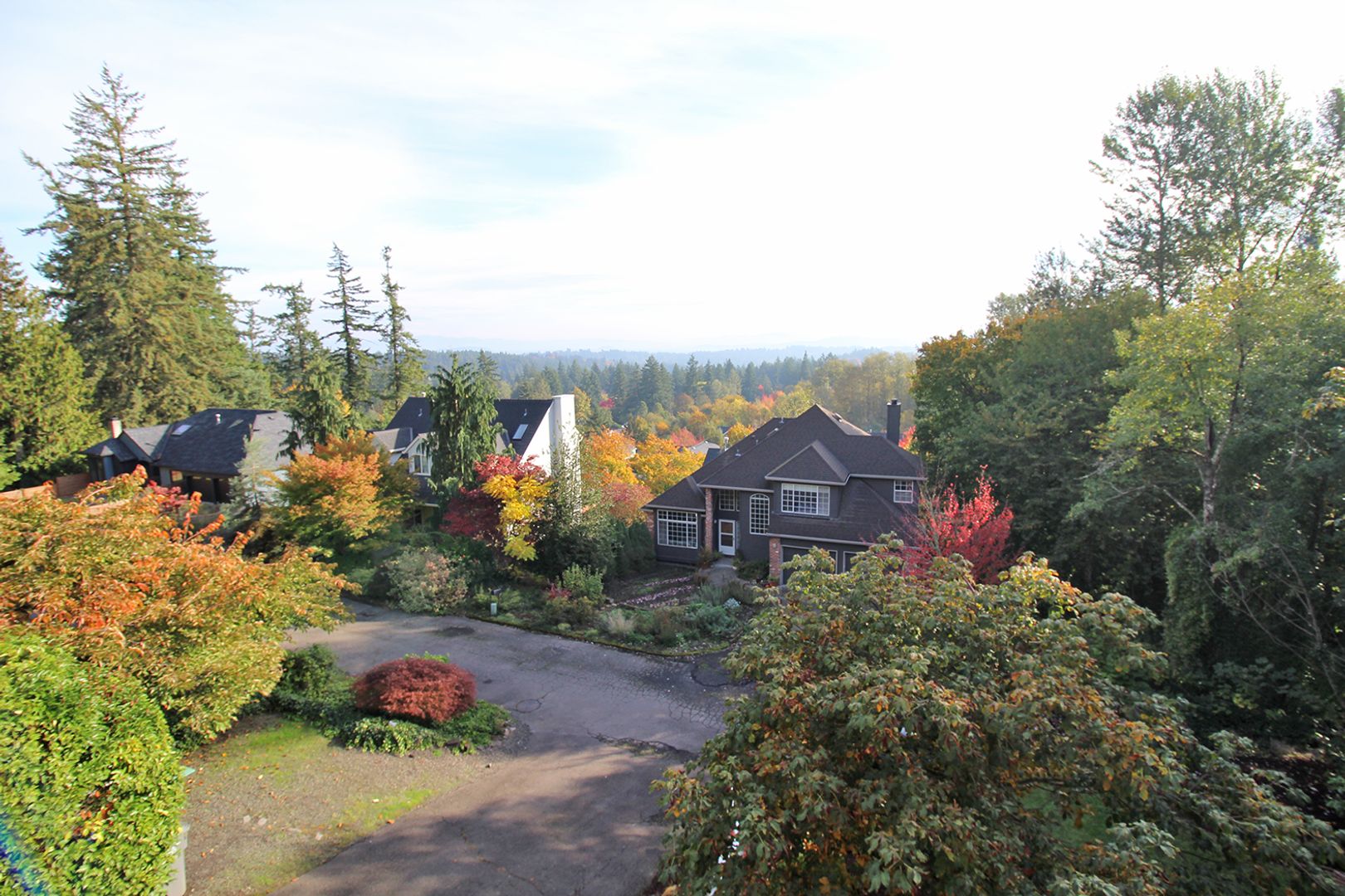 This is an absolutely gorgeous modern apartment home on the upper two floors with wrap-around deck, balcony and amazing view of the valley, Mt. Hood and a glimpse of Mt. St. Helens. There is a large side yard which sits on a large greenspace with a small creek running by.