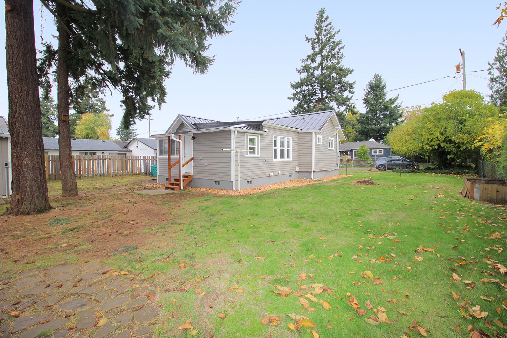 • Wonderful fenced 7,400 sf lot with large back and side yards with patio, outdoor fireplace, planting beds, and beautiful mature fir trees on one side.