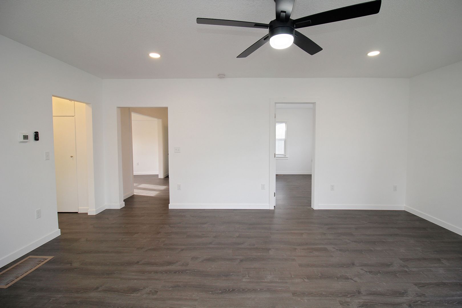 • Spacious Living Room has large windows that floor the room with natural light and a ceiling fan