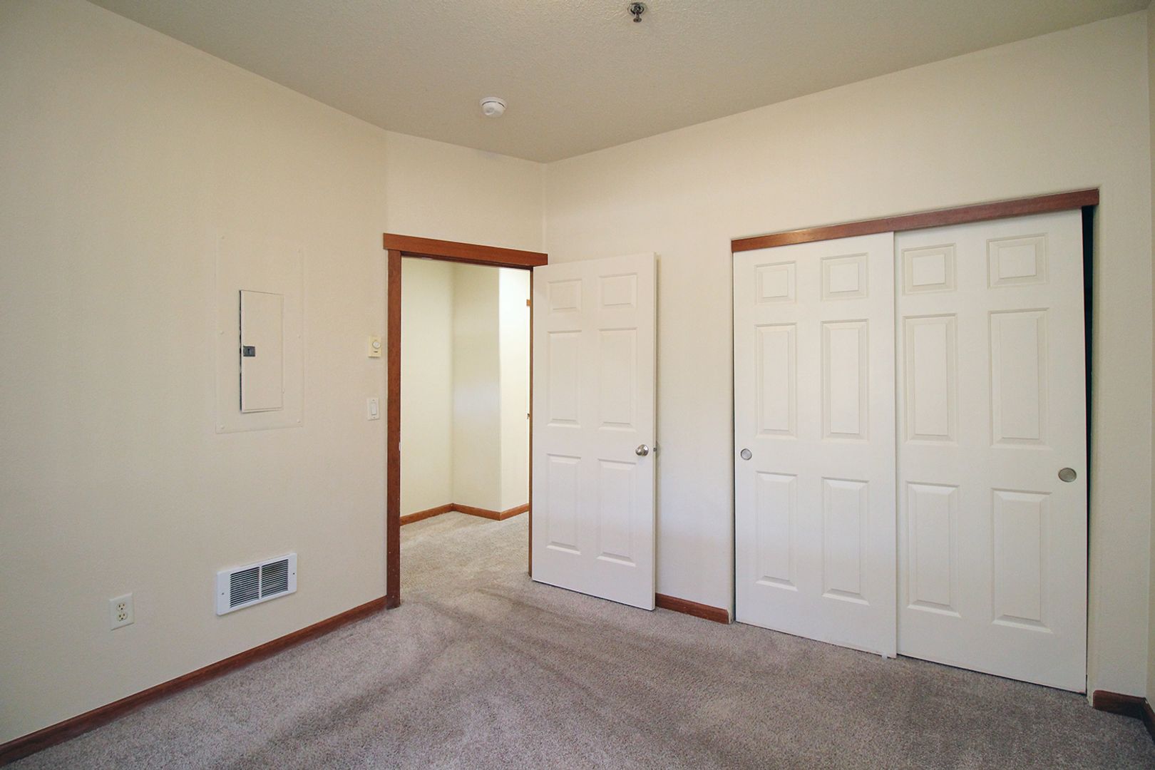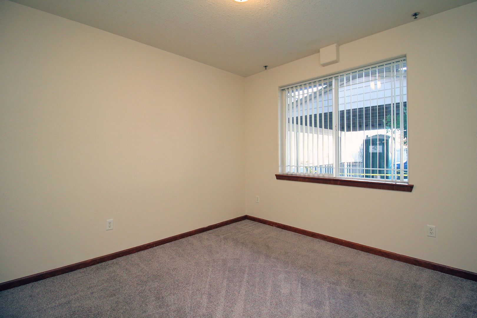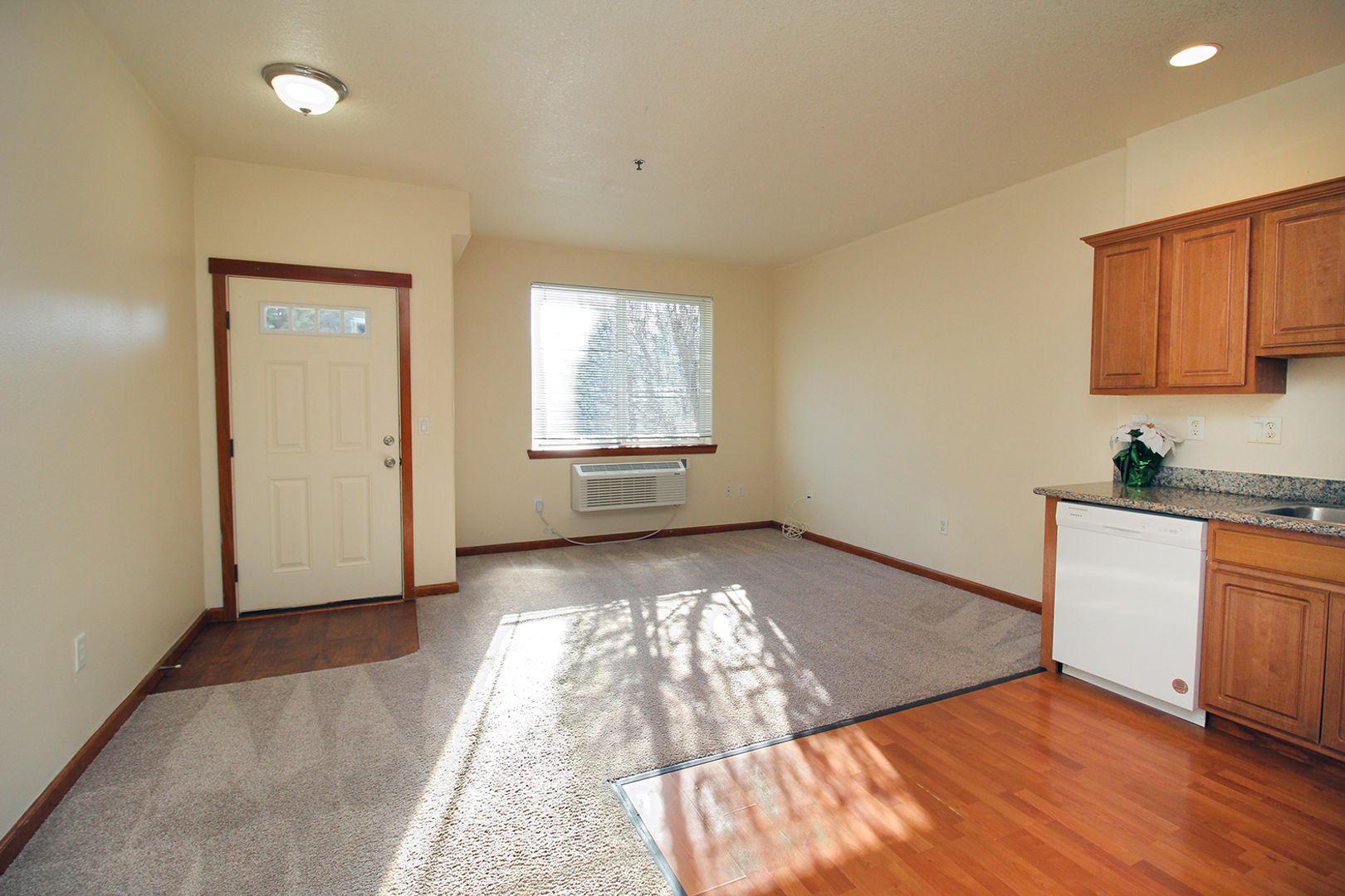 • Carpeted bedroom and living room with large windows